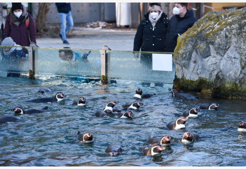 2月14日,游客在奥地利维也纳美泉宫动物园观赏洪堡企鹅。 奥地利第三次全面“封锁”措施于2月7日到期...