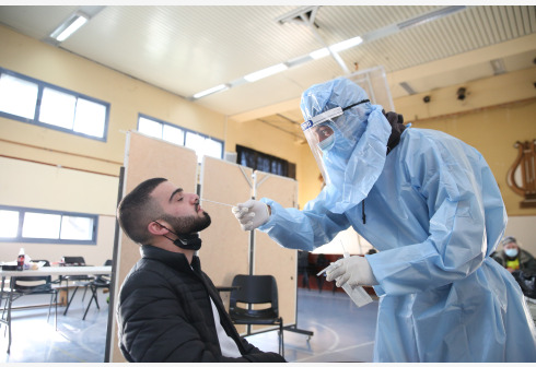 2月15日,一名男子在以色列北部城镇塞费德接受新冠检测。 以色列卫生部15日公布的数据显示,该国当天...