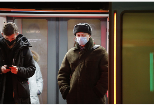 2月10日,在俄罗斯首都莫斯科,人们佩戴口罩乘坐地铁。 据俄罗斯防疫指挥部10日消息,该国较前一日新...