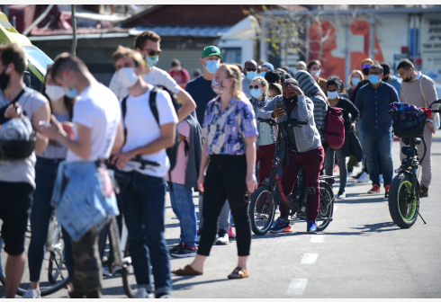 2月9日,在以色列特拉维夫苏拉斯基医疗中心,民众排队等待接种新冠疫苗。 以色列卫生部9日公布的数据显...
