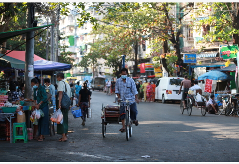 2月2日,一名人力三轮车夫经过缅甸仰光的一个街区。 缅甸军方一名高级军官2日说,军方当天陆续释放1日...