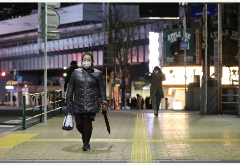 2月2日,在日本东京,人们戴口罩出行。 日本首相菅义伟2日晚宣布,对于11个原定实施紧急状态到2月7...