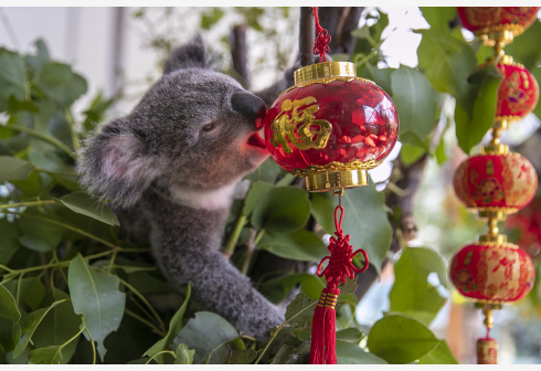 2月2日,澳大利亚悉尼野生动物园的考拉栖息树上挂着中国农历春节装饰。 随着中国传统新春佳节临近,澳大...