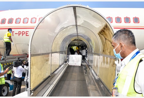 1月28日,工作人员在斯里兰卡科伦坡郊外的班达拉奈克国际机场卸载疫苗。 斯里兰卡卫生部1月28日公布...