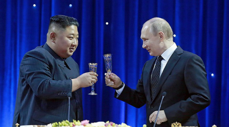 据朝中社26日报道,朝鲜最高领导人金正恩与俄罗斯总统普京25日在俄罗斯符拉迪沃斯托克举行会晤,双方就...