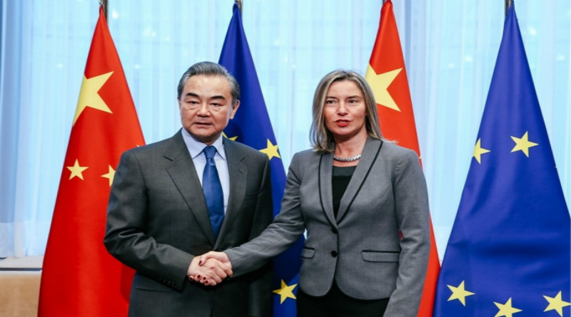 当地时间3月18日,中国国务委员兼外交部长王毅在布鲁塞尔同欧盟外交与安全政策高级代表莫盖里尼共同主持...