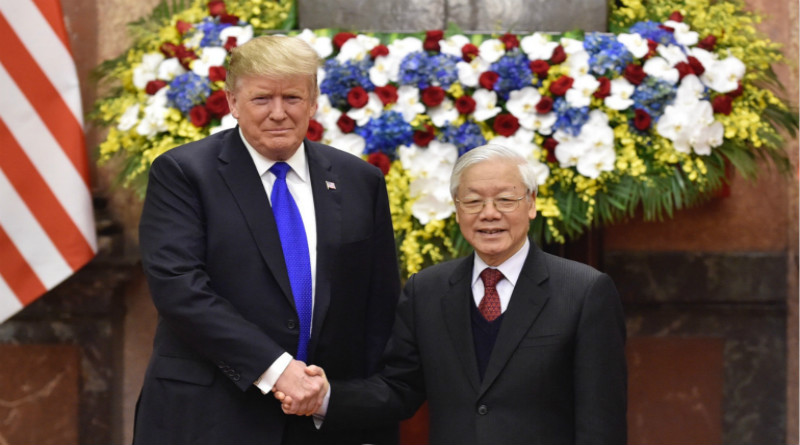 越共中央总书记、国家主席阮富仲27日在河内与在此参加美朝领导人第二次会晤的美国总统特朗普举行会谈,双...