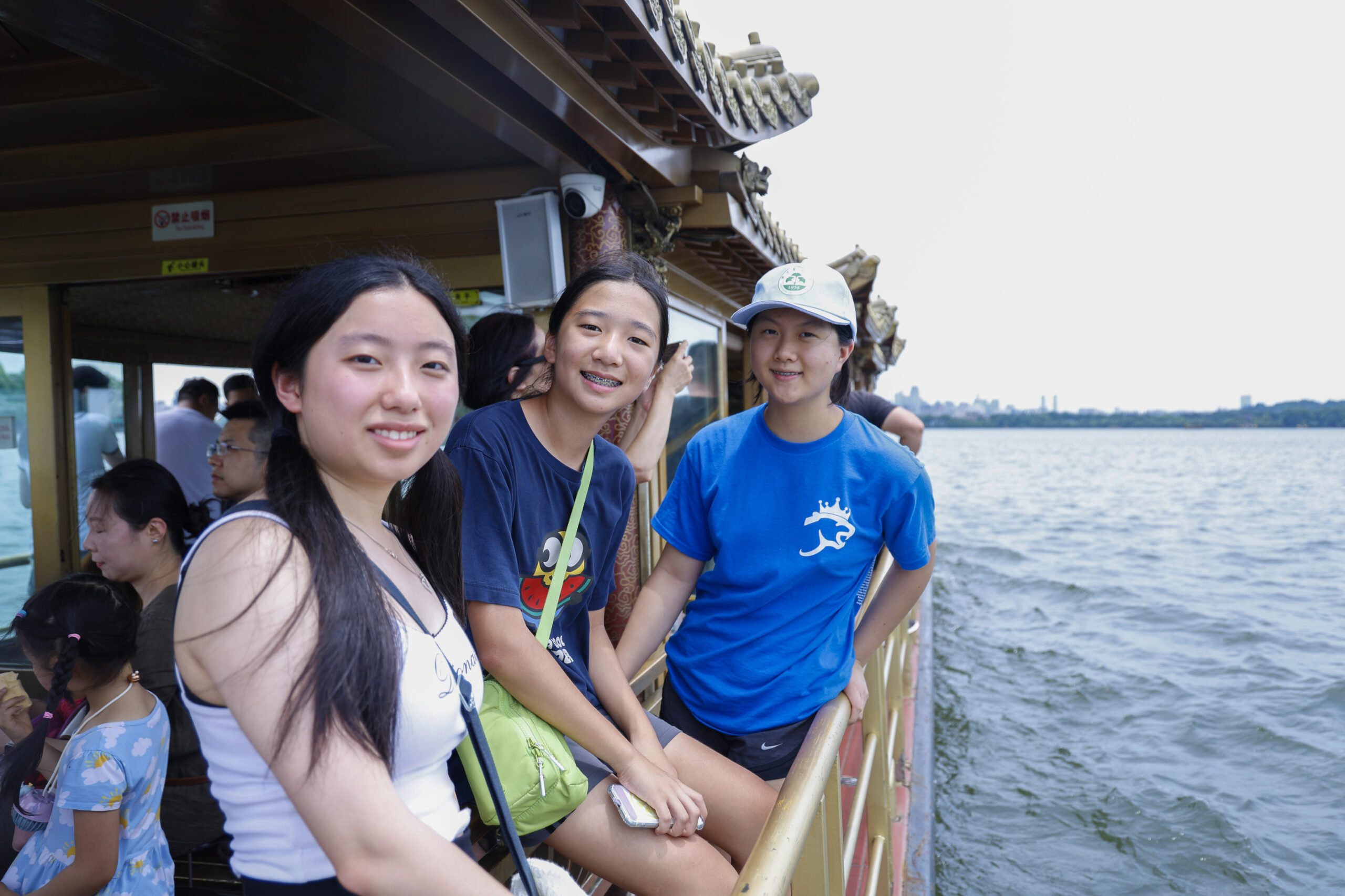 7月2日,美国华裔青少年乘船游西湖。当日,“感知中国——寻韵浙江”中美人文交流活动走进浙江杭州,来自...