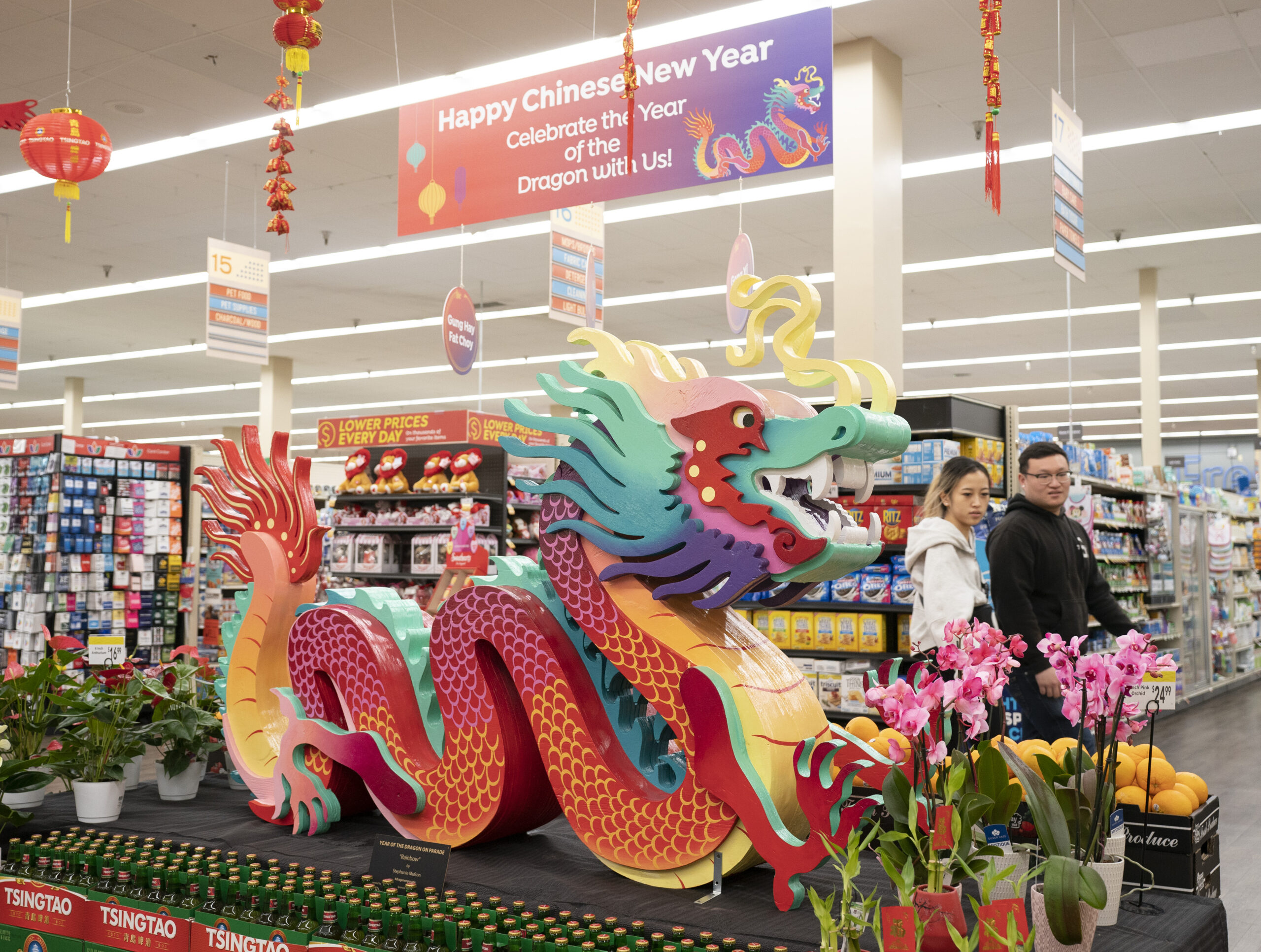 当地时间1月28日,一尊龙雕像出现在美国旧金山一家超市。从当日起,设计风格各异的龙雕像在旧金山不同地...