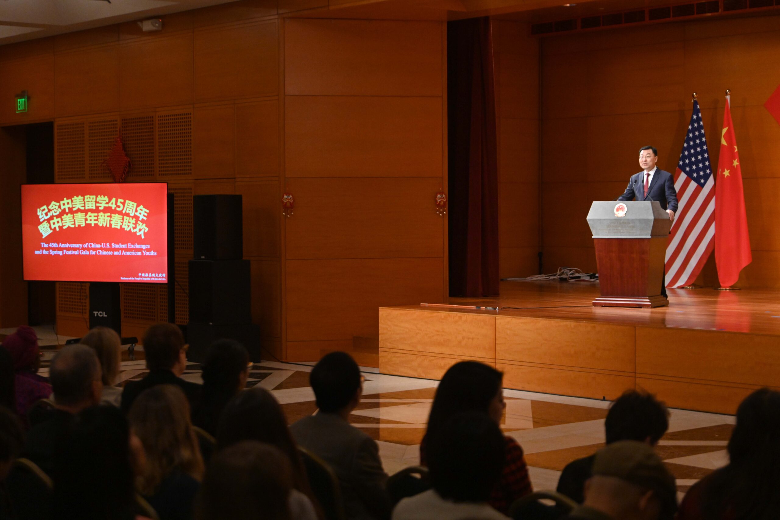 当地时间1月28日,华盛顿,纪念中美留学45周年暨中美青年新春联欢活动在中国驻美大使馆举行。图为中国...