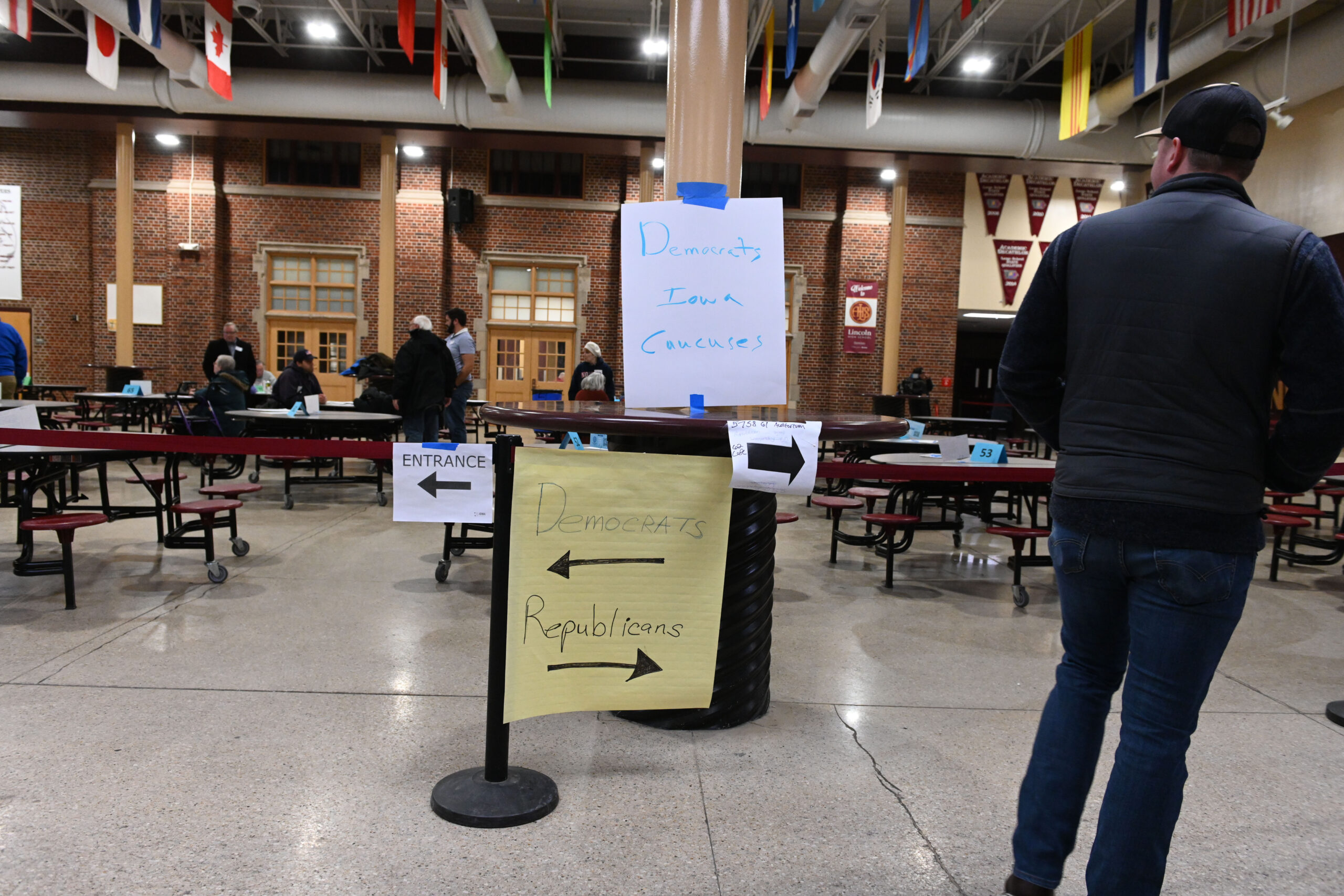 当地时间1月15日晚,美国2024年总统选举艾奥瓦州初选举行。图为得梅因林肯高中的一处党团会议地点。...