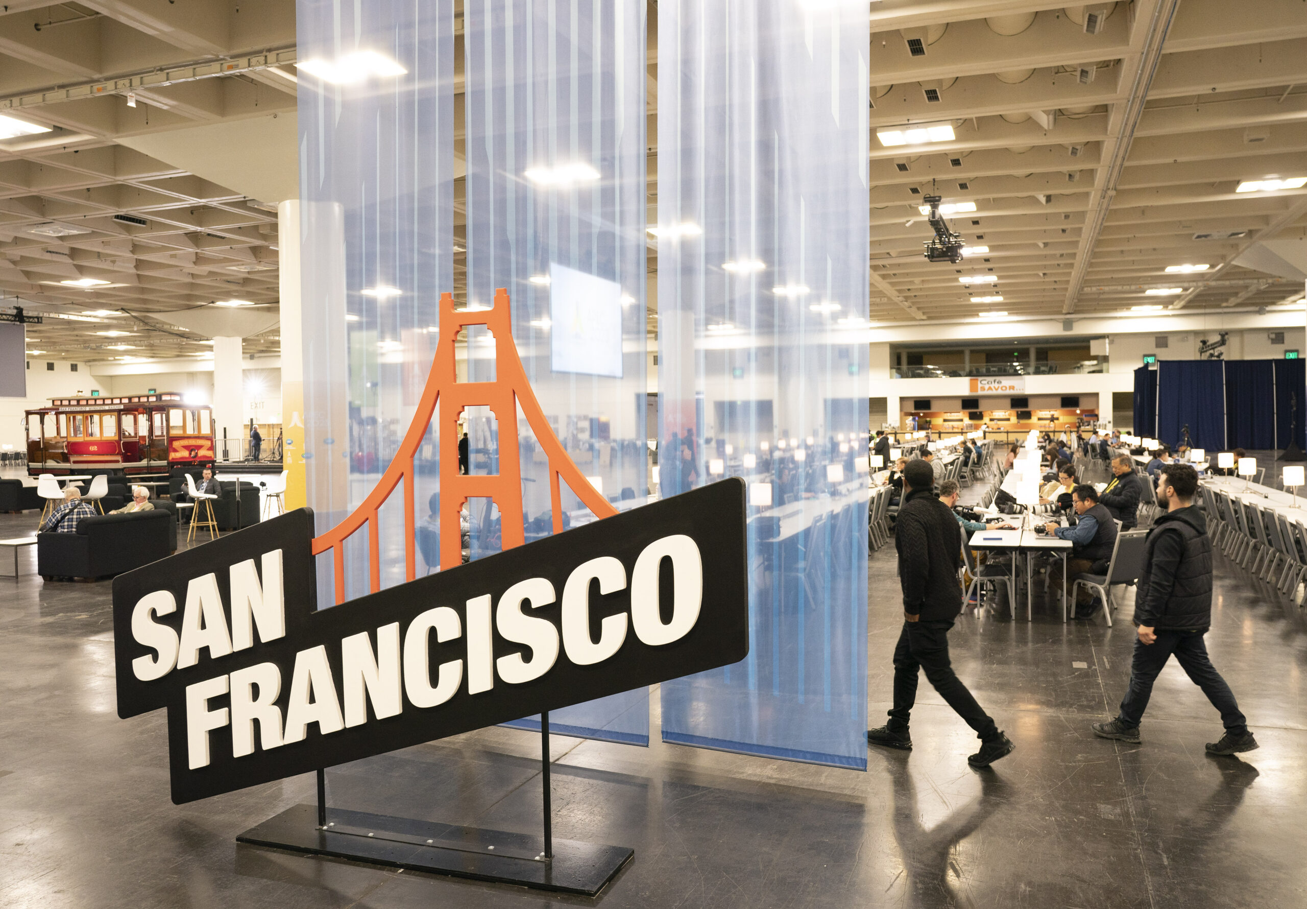 当地时间11月12日,各国记者在美国加州旧金山2023APEC会议国际媒体中心工作。亚太经合组织(A...