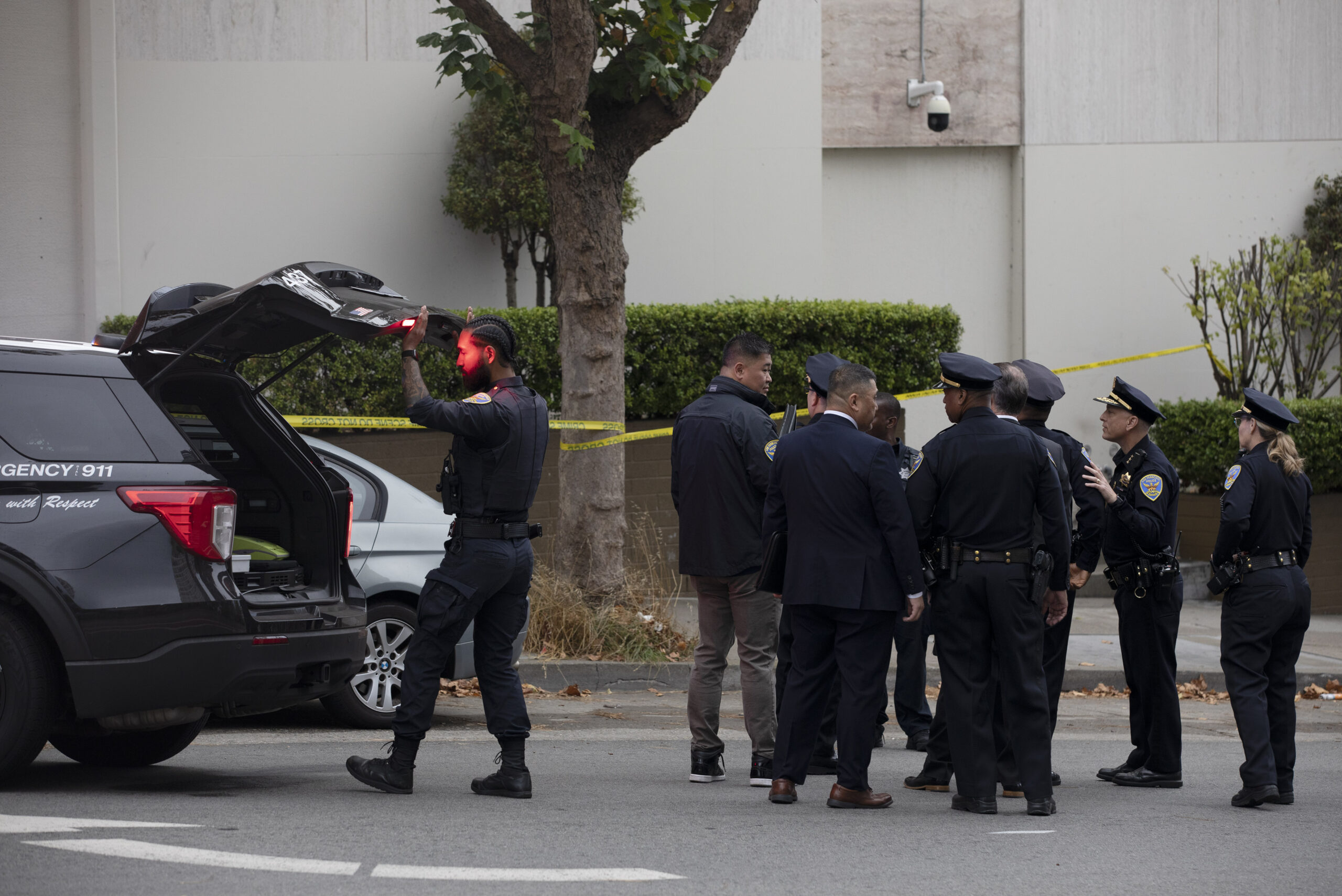 当地时间10月9日,美国旧金山警方在中国驻旧金山总领馆附近对总领馆馆舍遭冲闯袭击事件展开调查。中国驻...