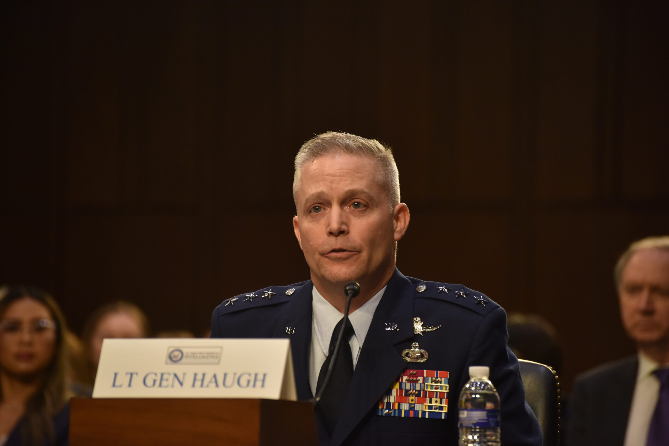 当地时间7月12日,美国空军中将哈夫(Timothy D. Haugh)出席国会参议院情报委员会举行...