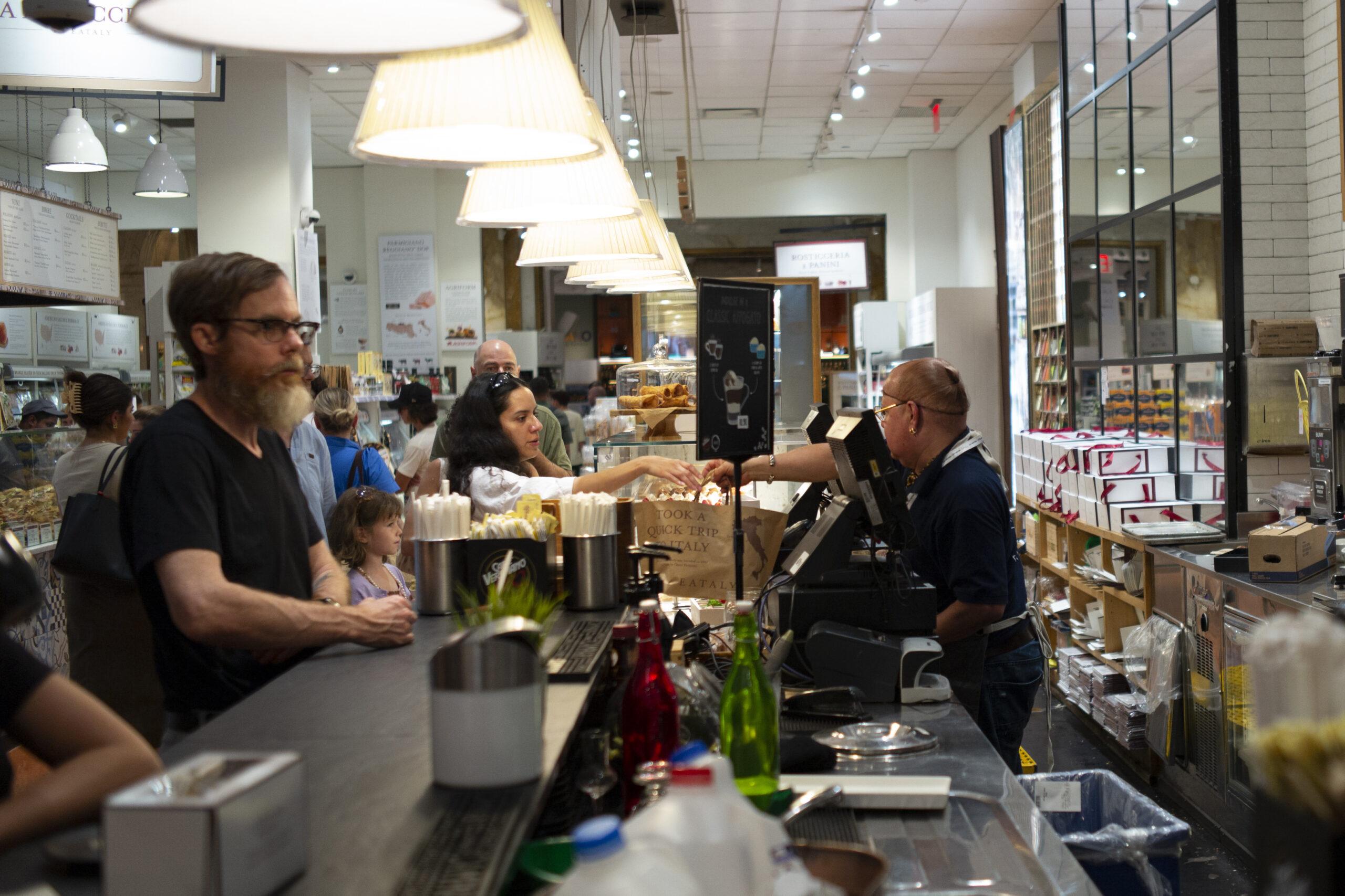 当地时间7月12日,顾客在美国纽约曼哈顿一家食品商店里购买食品。美国劳工部当日公布的数据显示,美国物...