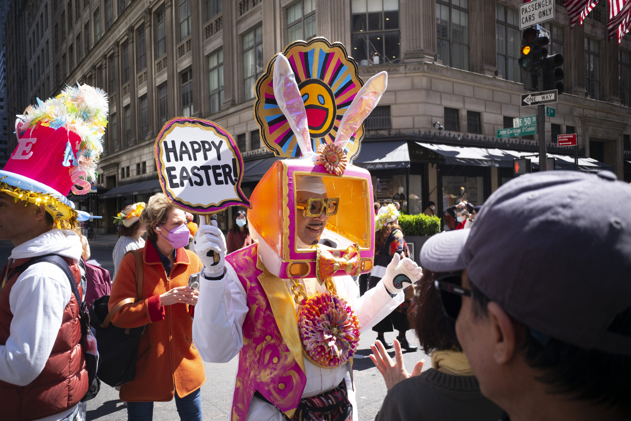 当地时间4月9日,人们在纽约参加复活节花帽游行。当日是西方传统节日复活节,人们头戴精心制作的花帽,在...