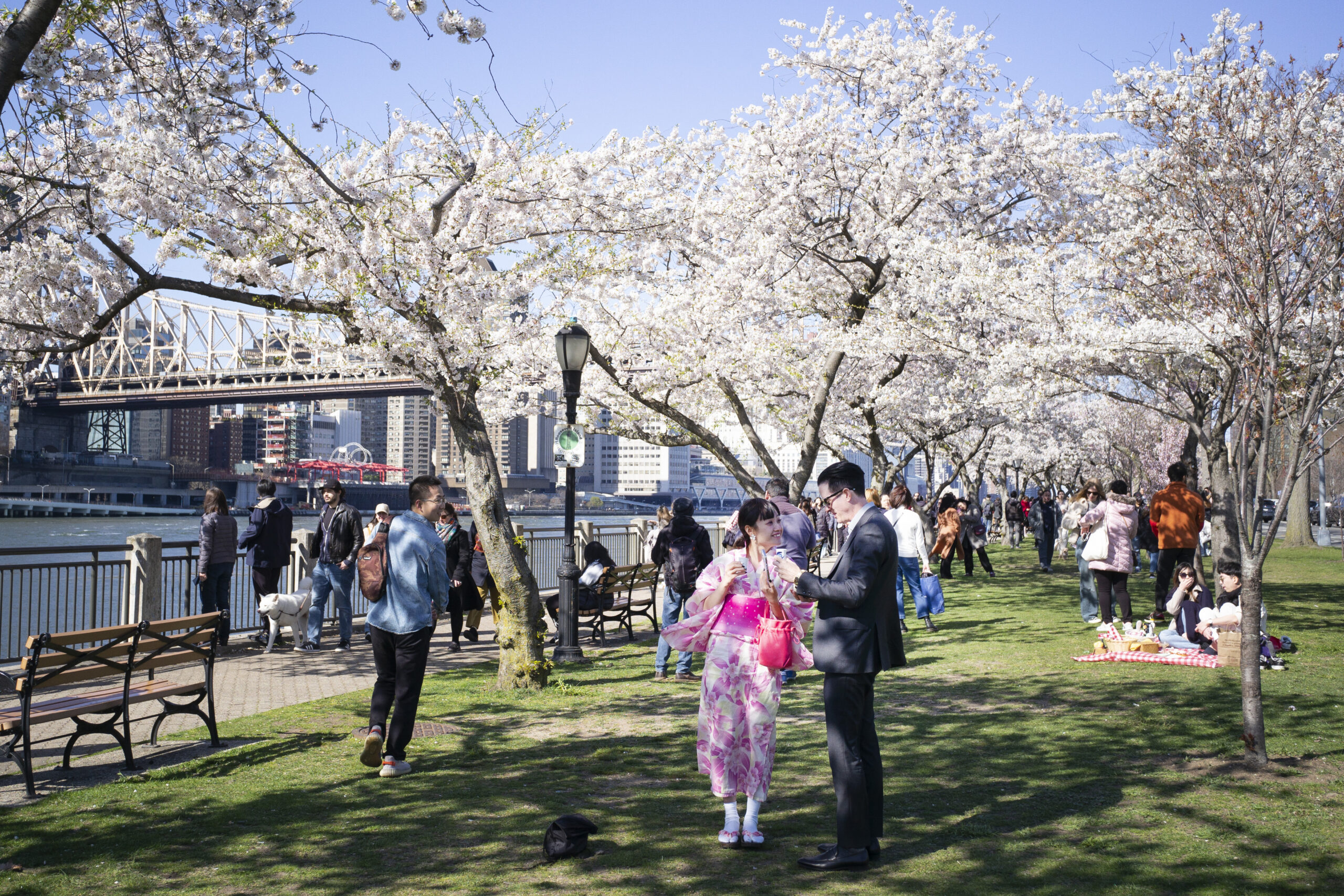 当地时间4月9日,美国纽约罗斯福岛樱花盛开,许多民众前来赏春光。 未经允许不得转载:城市新闻网ici...