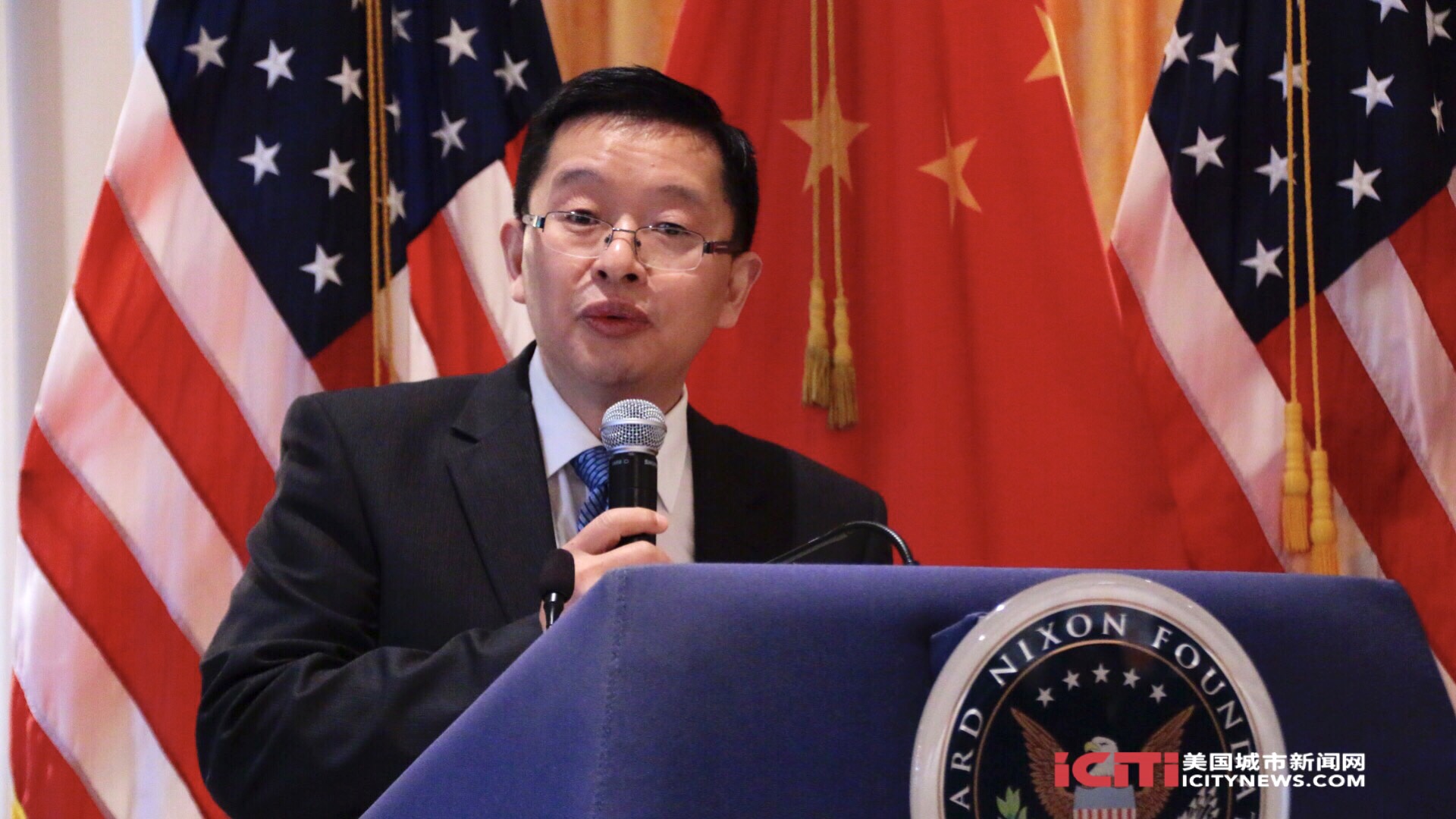 中华人民共和国驻洛杉矶总领馆副总领事代双明代表总领馆发表讲话。他首先恭喜所有的小书画家们在传承中华文化、在艺术创作上所取得的成绩。接下来,他说,中美两国关系对稳定亚太地区和繁荣、世界和平非常关键。当前中美两国关系遇到了一些困难,但这只是前进道路上的一些曲折。现在的中美关系和40年前相比不可同日而语,相信包括在在座的各位侨胞们、朋友们的支持下,两国人民一定能客服当前短时间的困难,将中美关系带入下一个更加健康、成熟、稳定发展的40年。 最后,代双明副总领事向组织此次活动、支持和参与此次比赛与颁奖典礼的个人、机构表示感谢,恭贺大会圆满成功。