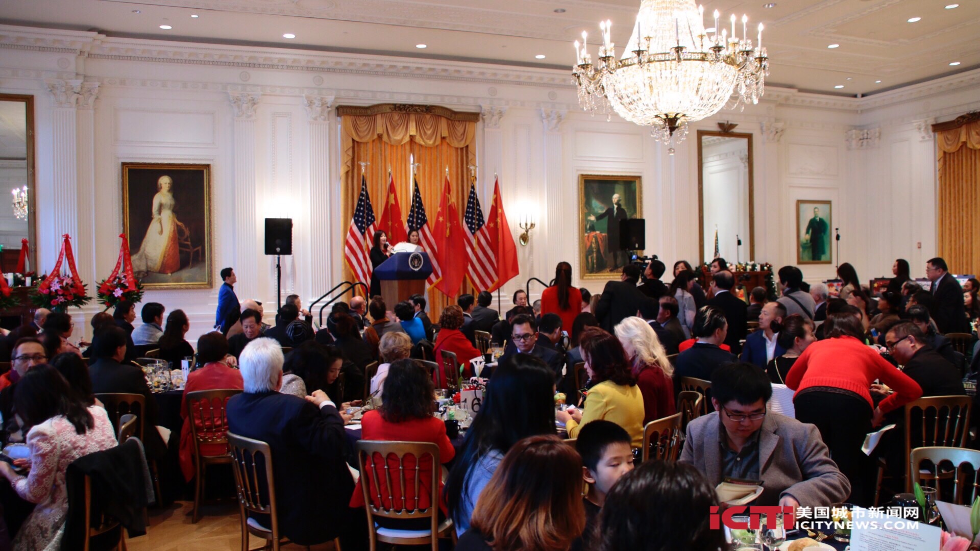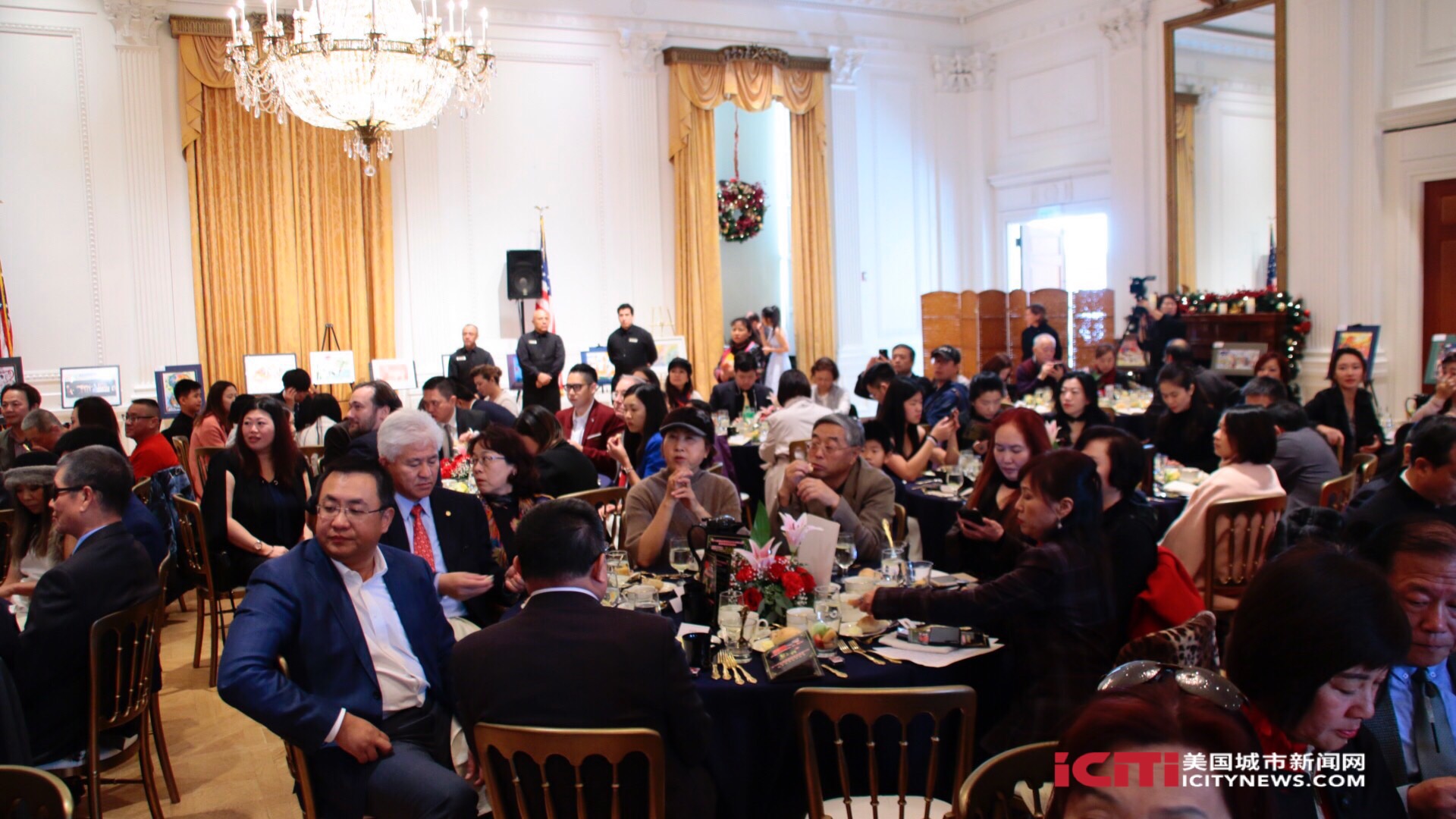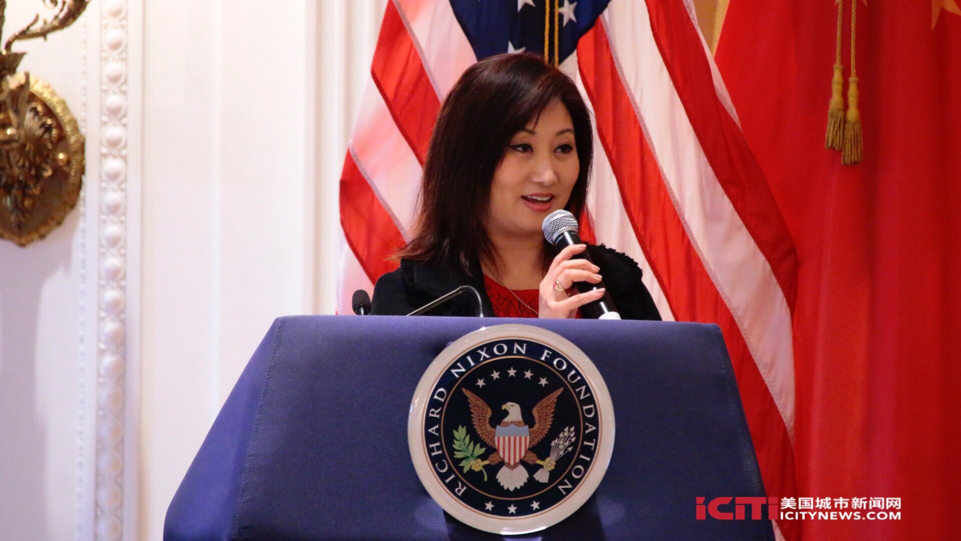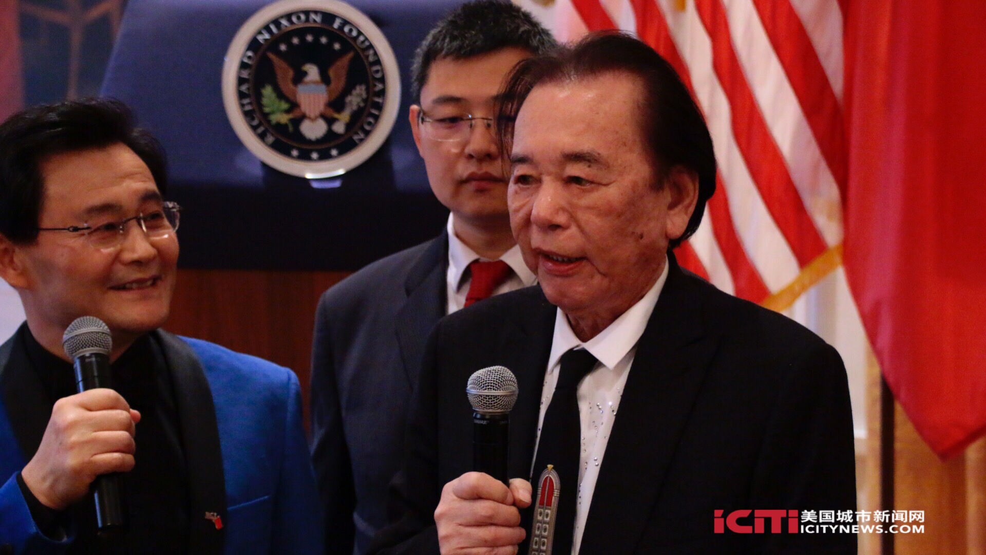 组委会主席李红致欢迎辞,为了这一文化公益活动所付出的努力、与会的组委会成员上台与来宾见面并在台上拉起了庆祝中美建交40周年的横幅,表达2019年新年伊始在尼克松博物馆举行书画比赛颁奖典礼的历史意义。