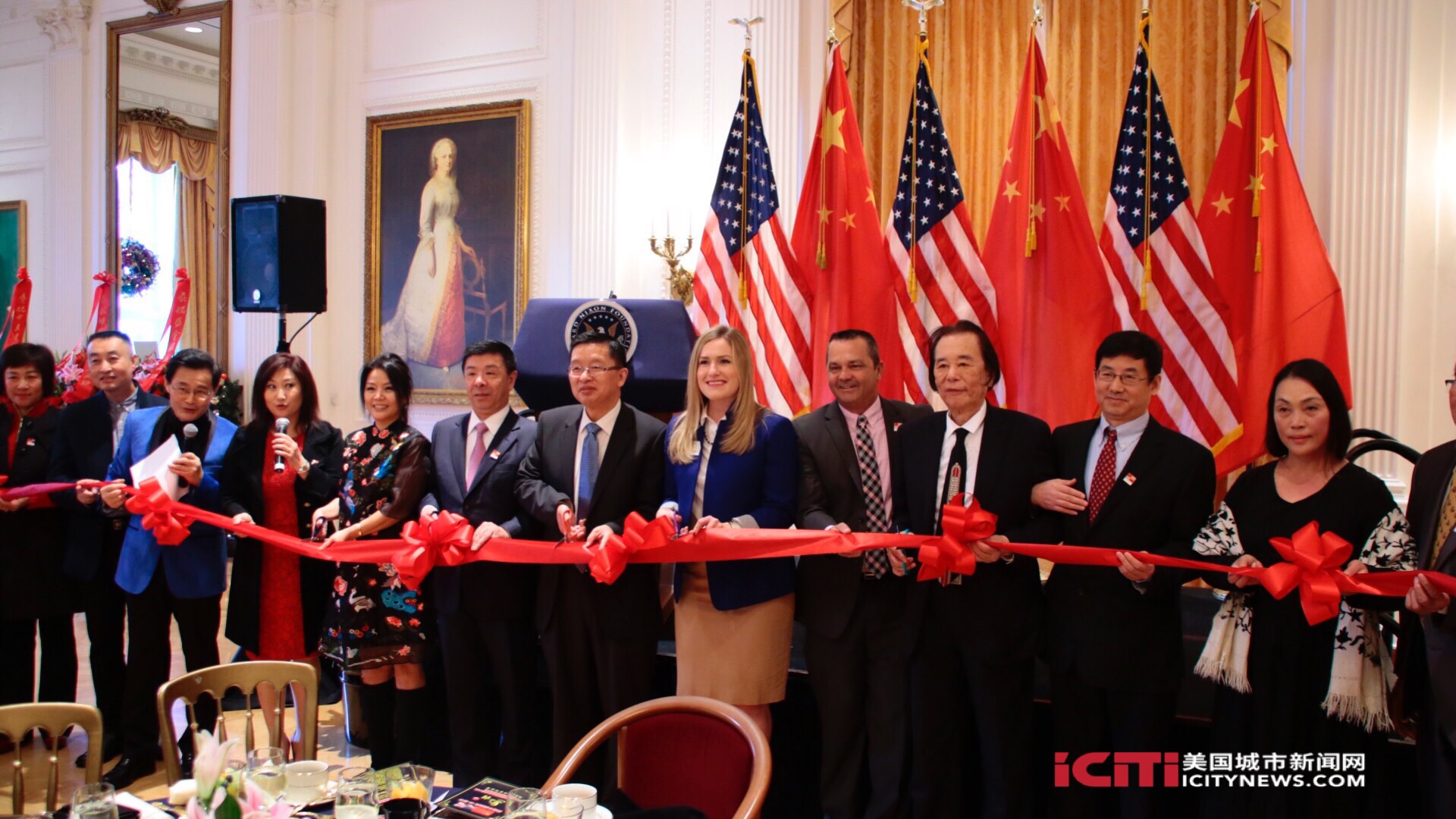 受邀的中美两国政要、社团领袖代表、本次活动的协办机构和个人为颁奖典礼剪彩。