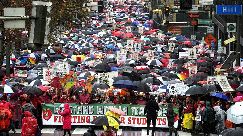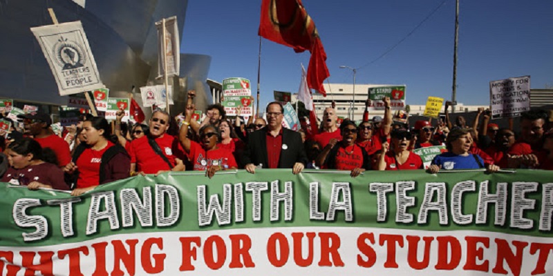 此次罢工的导火索,在于为教师利益而呼喊的洛杉矶教师联合工会(UTLA)和教师们工作的政府机关洛杉矶联合学区(LAUSD)未对给教师增加薪水等事项达成协议。