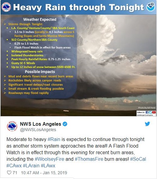 在文图拉县的区域Woolsey,洪水预警也在今晚发出。