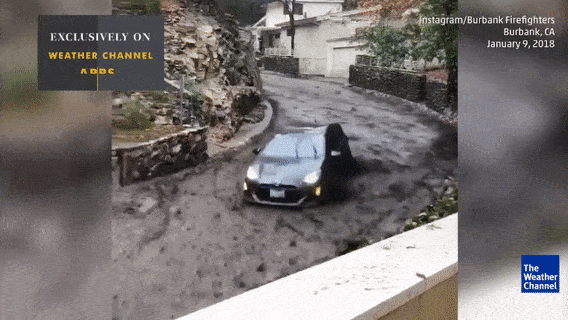 而在Burbank, 从Country Club 大道至Montana的强制疏散也已经开始。事实上早在上周发生风暴时,伯班克地区就已经爆发山洪,严重的山洪将一辆丰田小轿车一路冲刷下滑。