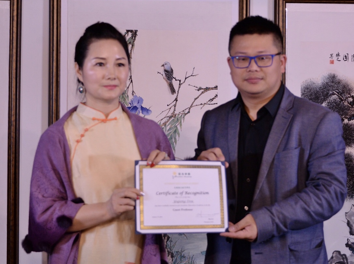 画家阿原向窦一琼颁发杰出艺术家证书