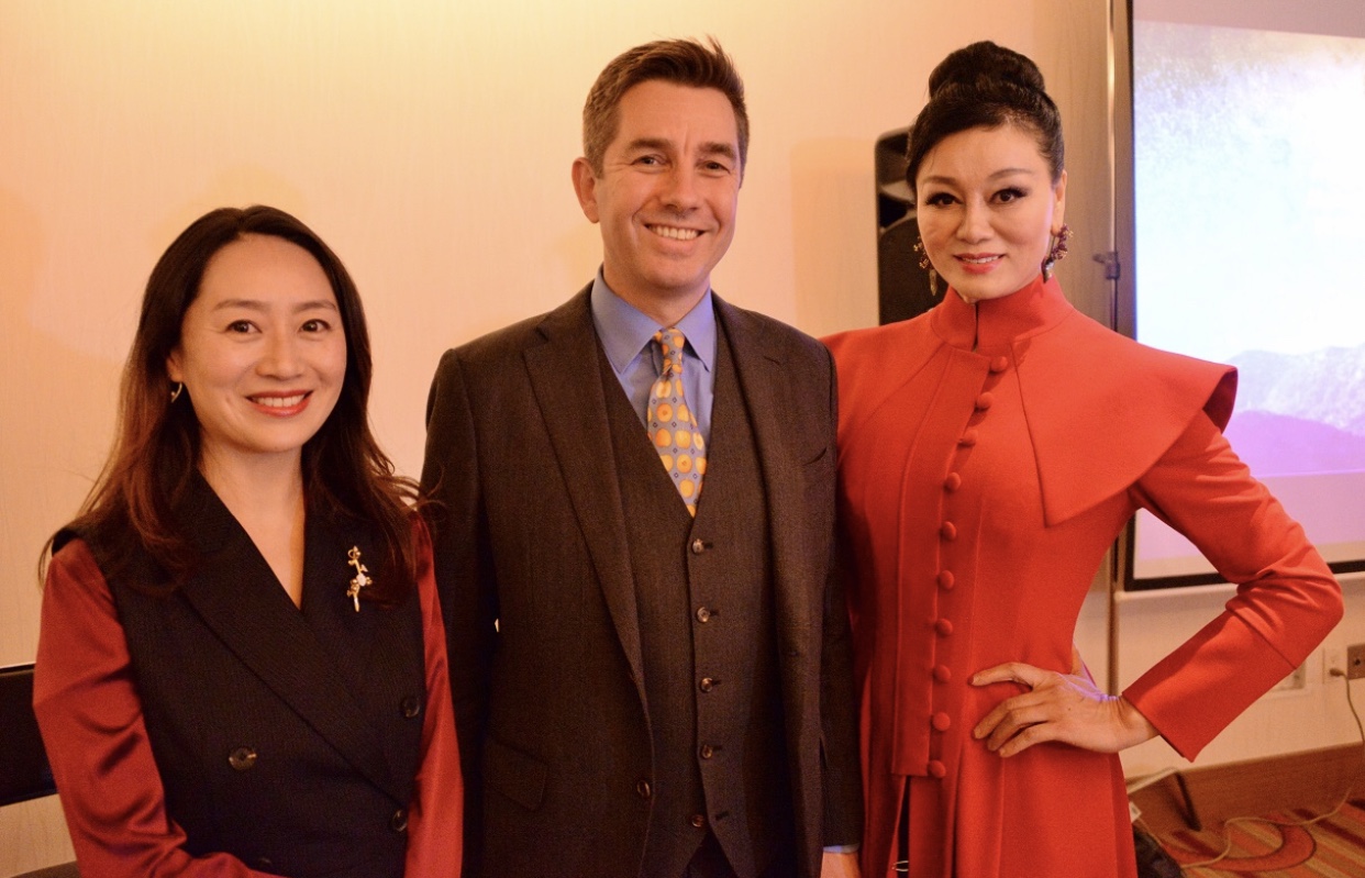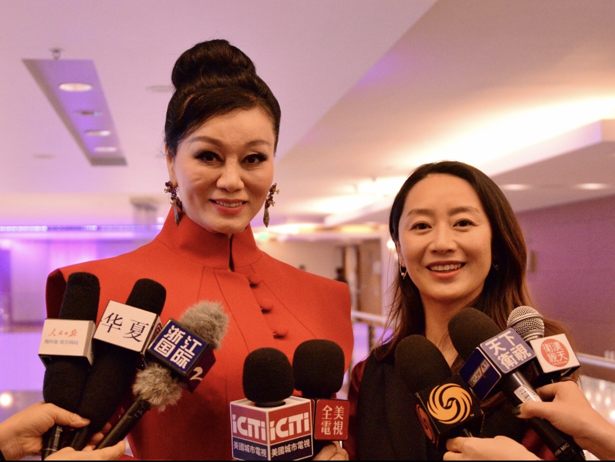 美国联合资本总裁李洁、活动发起人沈苹接受记者访问