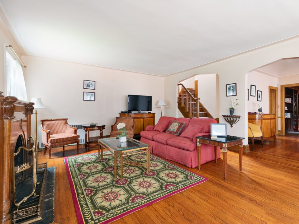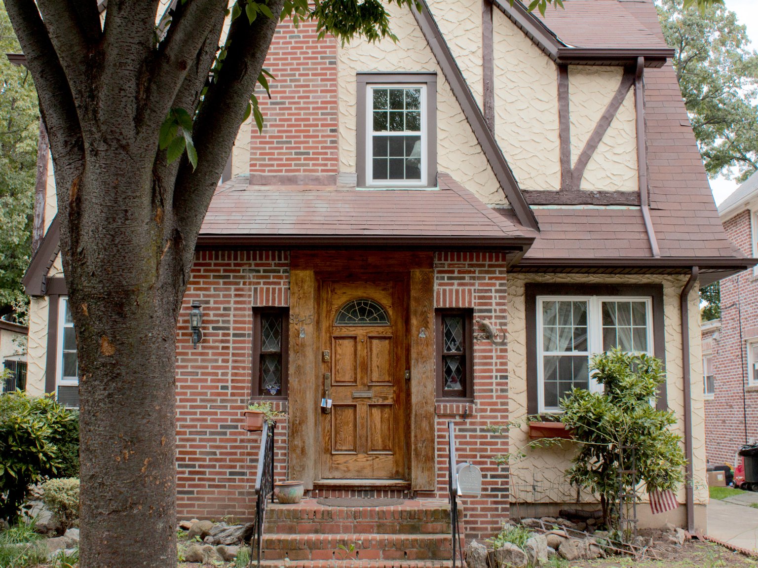 这栋五间卧室、都铎式风格的房子坐落在牙买加庄园(Jamaica Estates)一条安静、绿树成荫的街道上。牙买加庄园是皇后区的一个富裕社区,距离曼哈顿大约40分钟的车程。