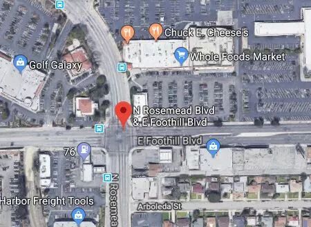 直到警方追到Pasadena附近的Foothill和Rosemead大道的交叉口时,嫌疑人车辆陷入附近的一个路坑。只见嫌疑人迅速跳下车辆,弃车逃窜。