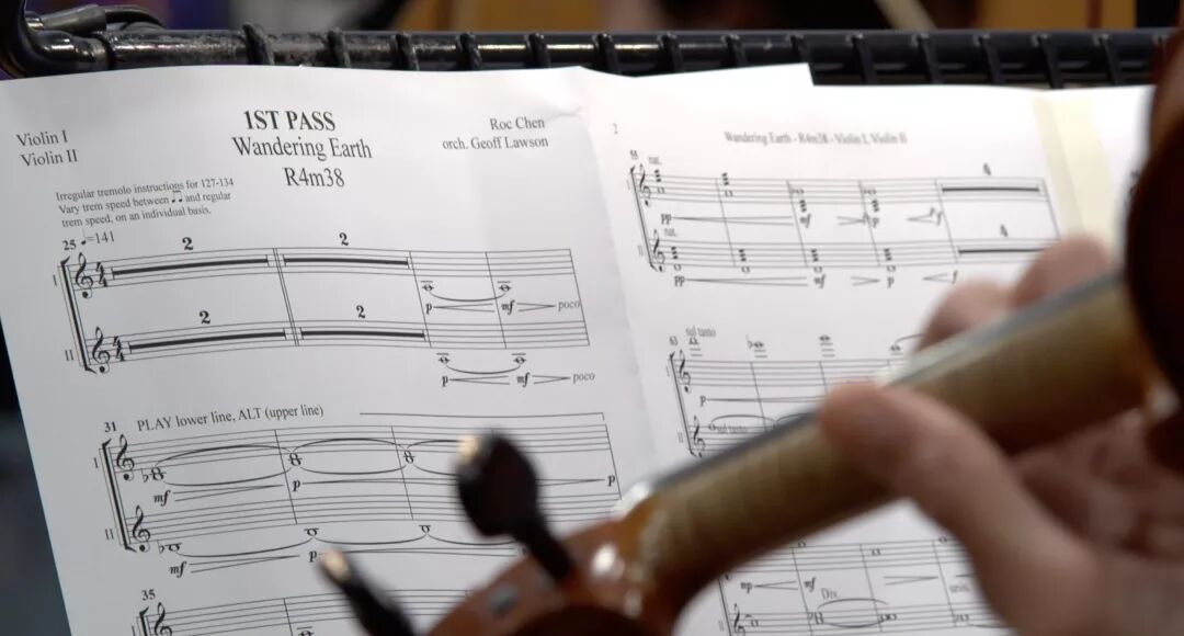 《流浪地球》的配乐正是采用了当年《星球大战》的录音棚,由英国皇家爱乐乐团演奏以及 Abbey Road Studios 录音制作完成。影片的音乐主要分成几个部分,其中“再见了,太阳系”,以及刘培强英勇牺牲的情节“星空下的诀别”,和最后的“再见木星,地球重生”等等都是以流浪地球主题饮野为主线来煽动情绪。另外一个部分则是太空系列,给机器人慕斯设计了专属于它的音色,潜意识的影响观众对于AI慕斯的角色判断。