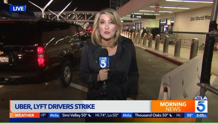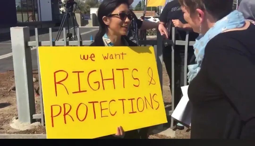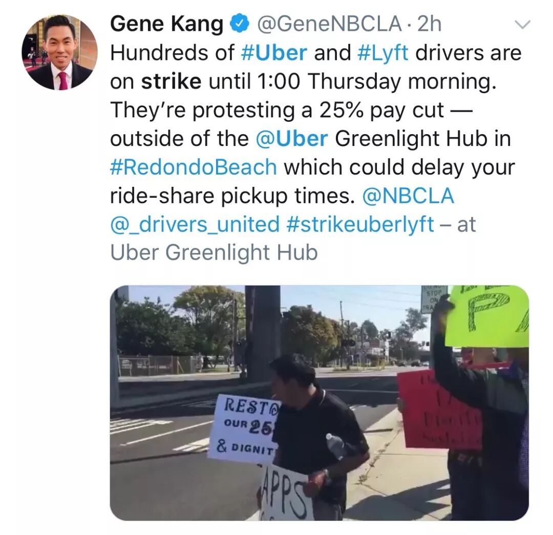 在洛杉矶郊区的Uber办公室外高喊口号,