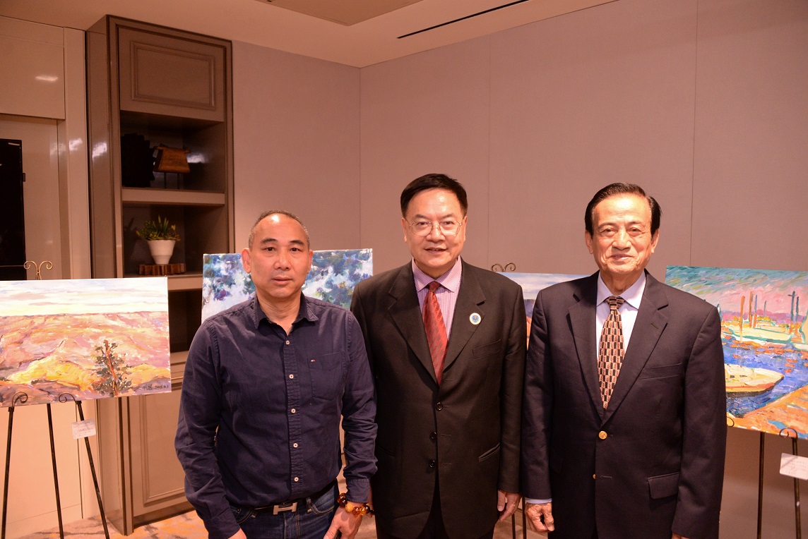 右起:曾文剑会长、程远会长、陈杰会长在油画作品展上