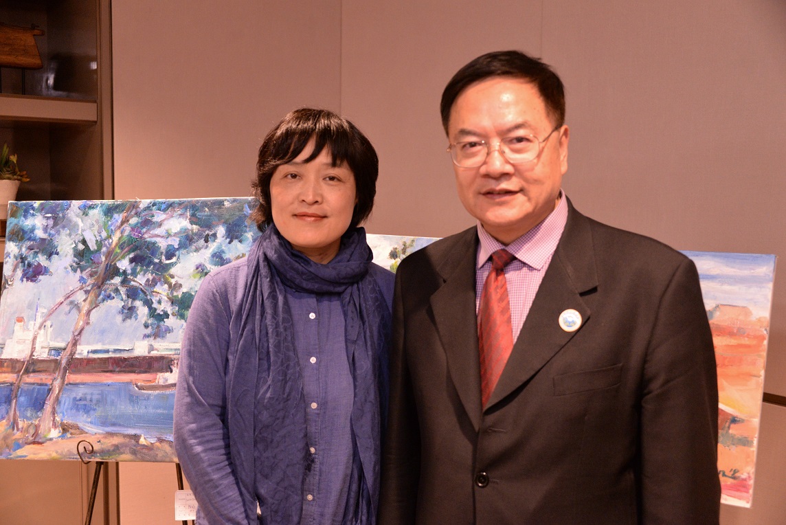 会长特别助理李胜与王征骅教授在油画作品展上