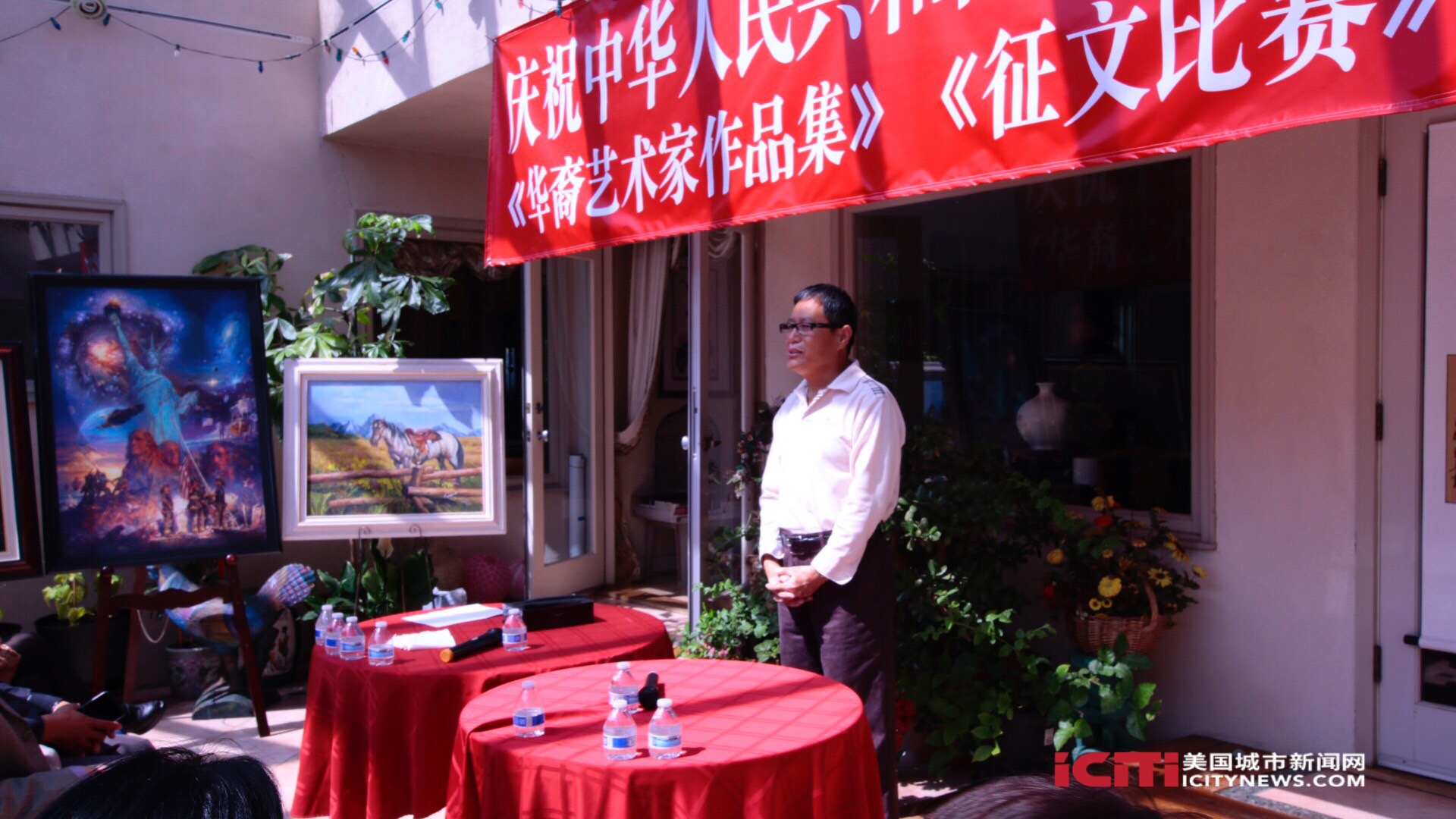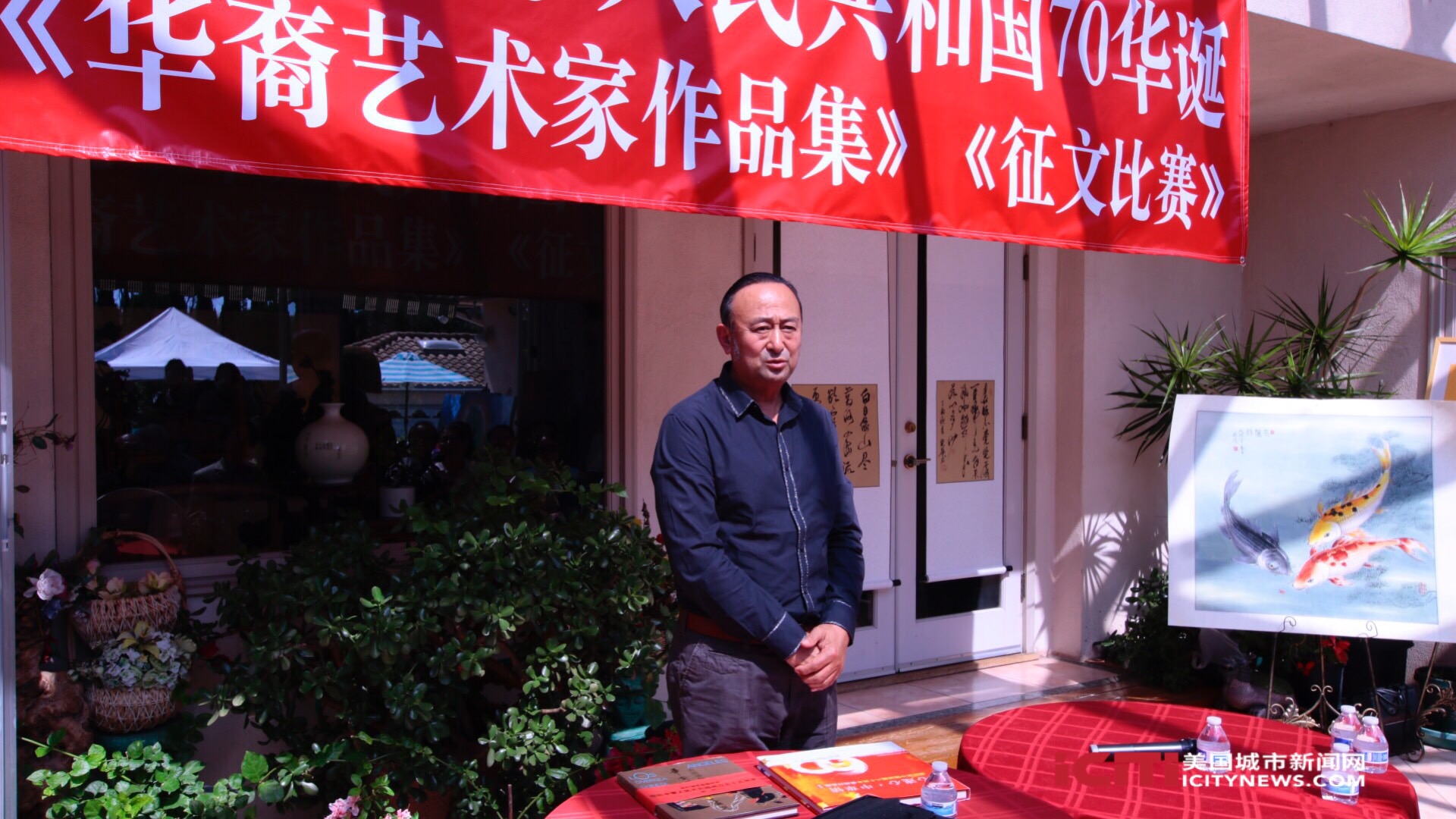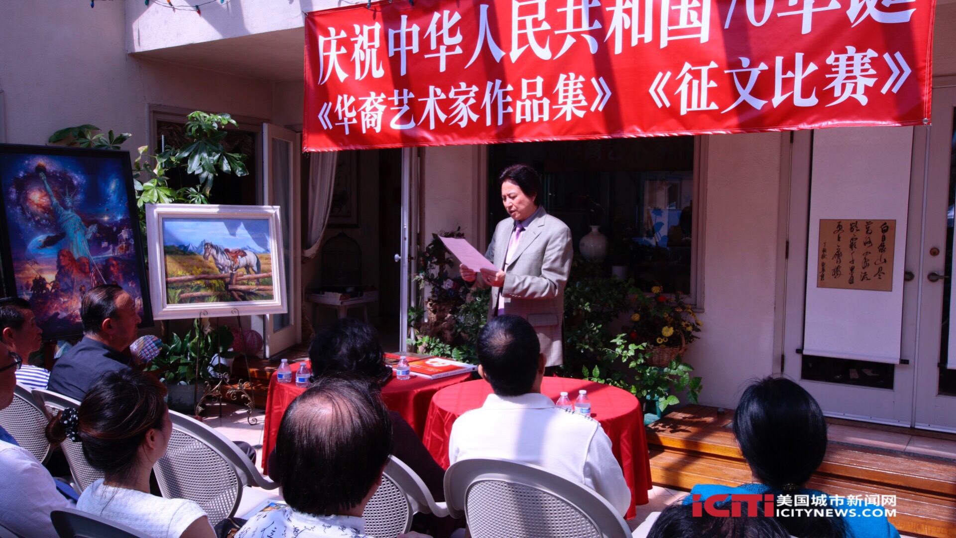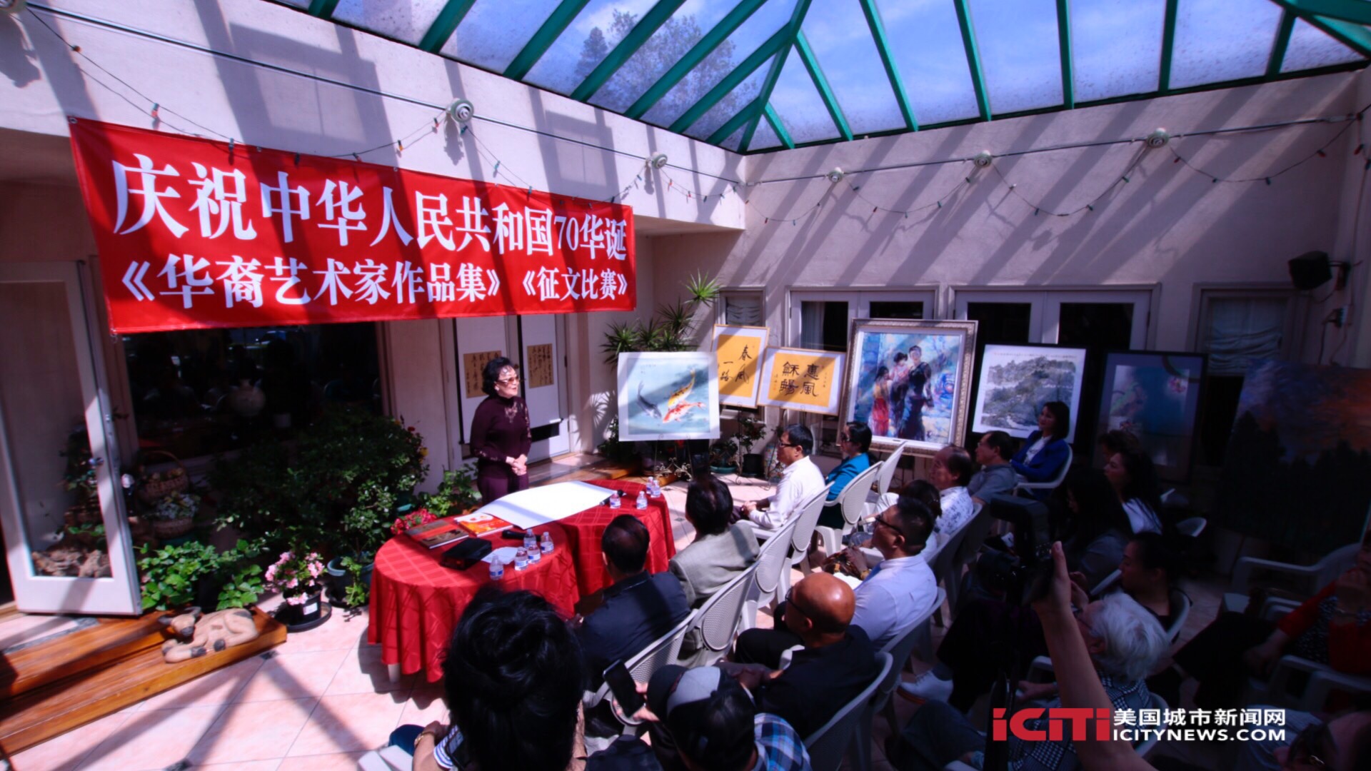 为庆祝中华人民共和国七十华诞,由著名艺术家丁绍光先生及著名侨领张素久共同发起和召集,美国多家艺术协会和组织,共同成立出版《庆祝中华人民共和国七十华诞-华裔艺术家作品集》组织委员会,面向美国征集华裔艺术家作品并出版发行。画集将赠收藏于中美多家博物馆、艺术馆和图书馆。4月9日,组委会在著名侨领张素久官邸召开新闻发布会,介绍征稿相关事宜,洛杉矶当地众多书画家出席发布会。