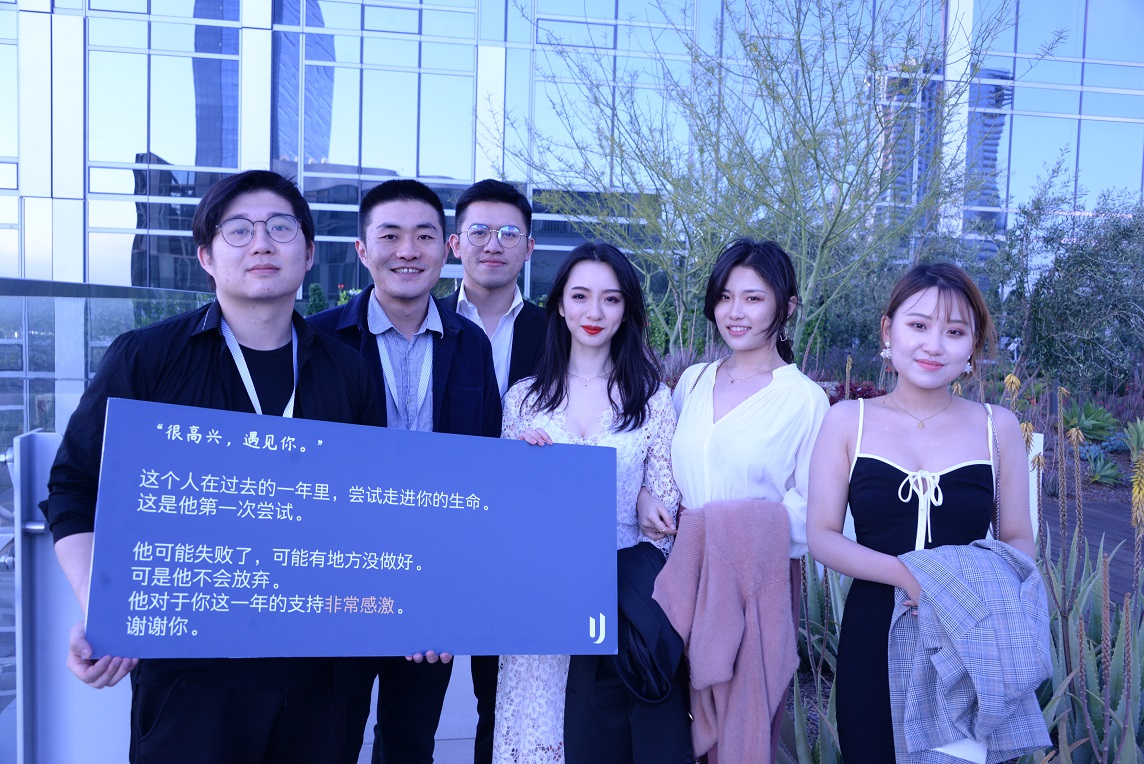 悠年公寓创始人何佳霖、全成云、陈奕轩与团队成员在晚宴上