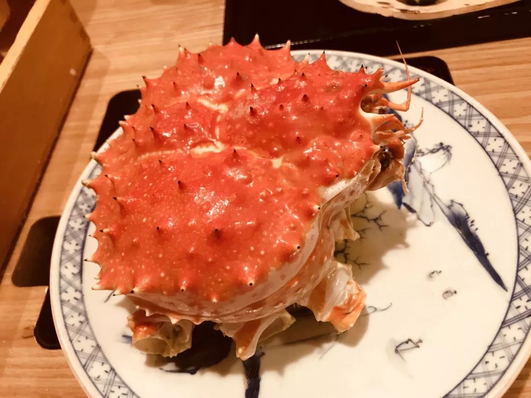 这家Kitafuku餐厅是米其林星级餐厅,提供日本独一无二的帝王蟹宴。首先呈现在我们眼前的是刚从北海道空运到的被称为日本最精致最新鲜的红色帝王蟹,接下来整晚的红王蟹宴也就由此展开。