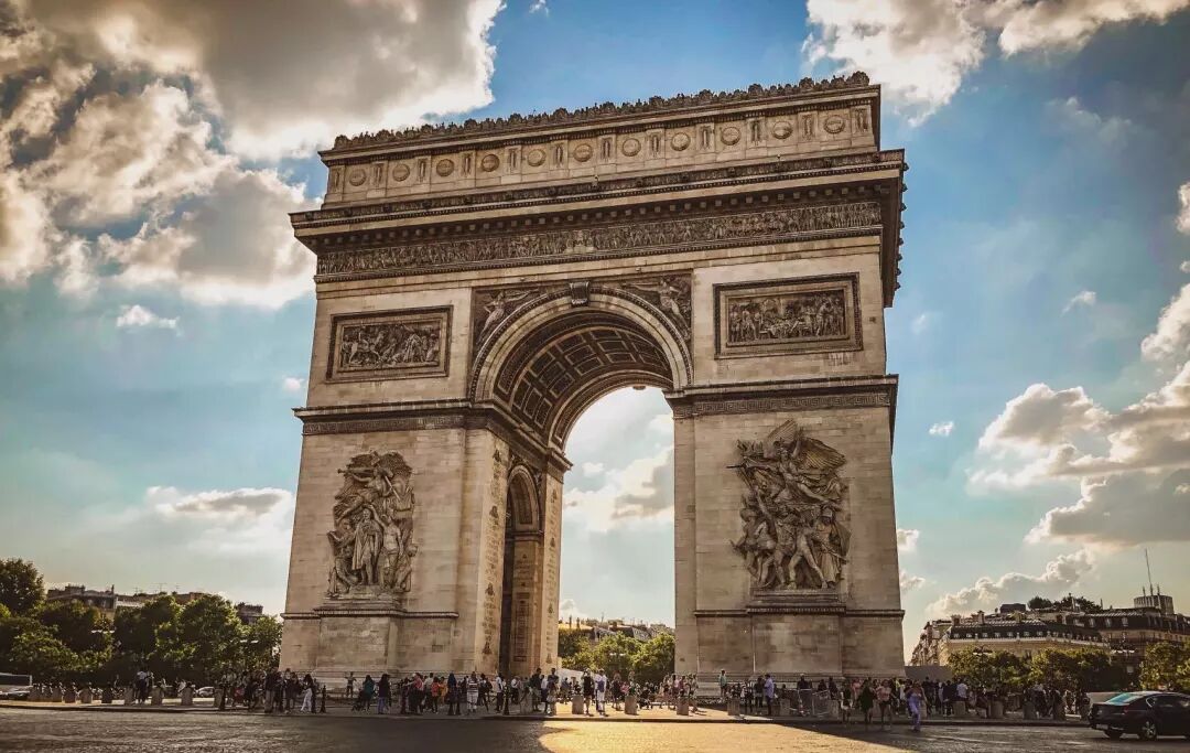 夜幕降临,埃菲尔铁塔的灯光照亮了巴黎夜空,展示了巴黎今夜依然金碧辉煌。