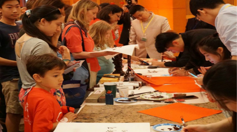 美国人珍妮佛·毕比-格特带着她7岁的儿子和6岁的女儿来到活动现场,第一次体验了用毛笔写字。在工作人员的帮助下,她的女儿写出了自己的中文名字,兴奋地展示给妈妈。珍妮佛告诉新华社记者,她的女儿是几年前从中国领养的,这次带儿女来参加开放日活动,是希望他们能够更多地了解和体验中国文化。