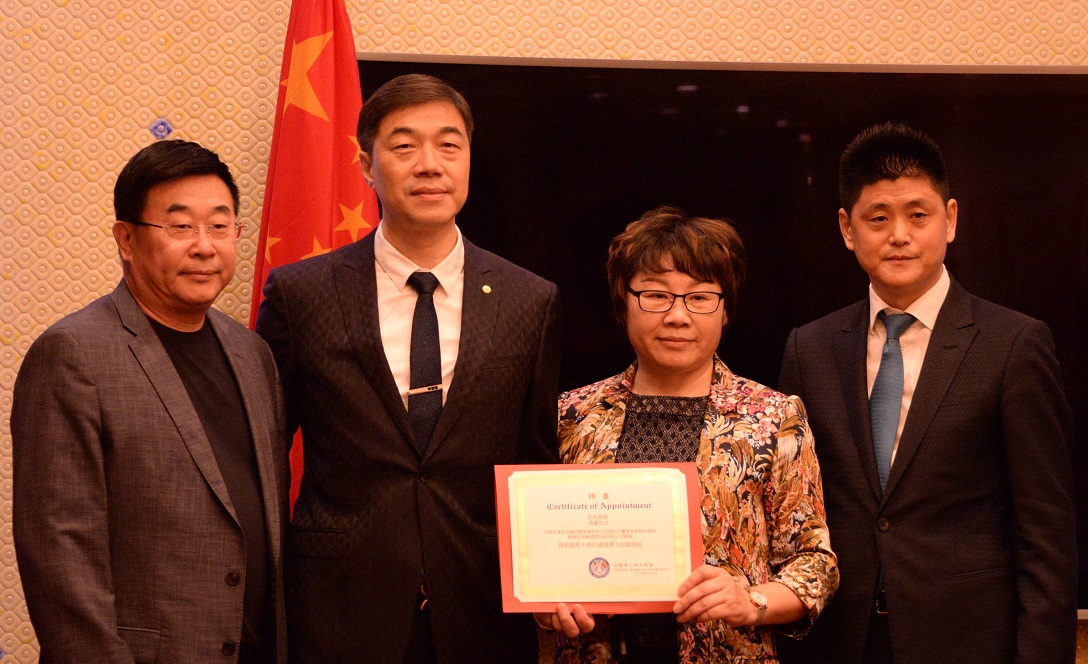 李社潮、张勇、蔡成华向冯军(左2)颁发副会长任职聘书