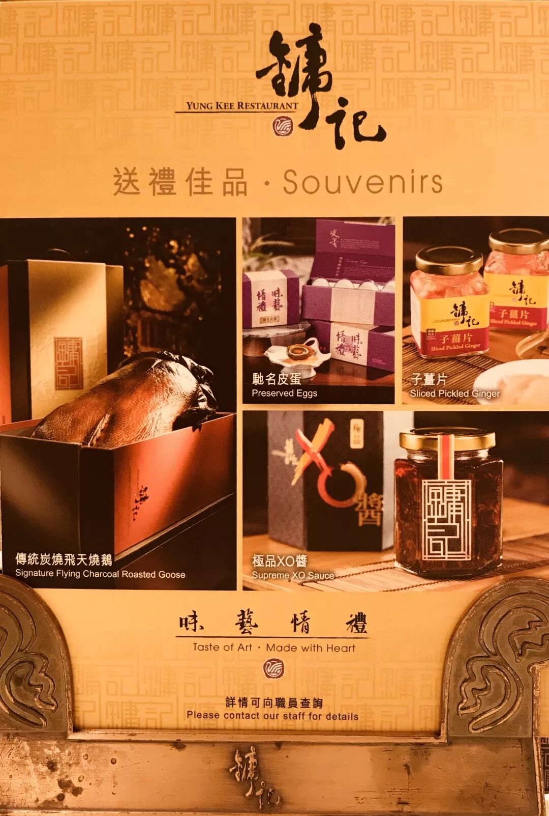 香港的烧鹅泰斗镛记酒家在上世纪六十年代已经被《Fortune》评为世界十五大餐厅,而且是唯一入选的中餐厅,并成为米其林星级餐厅。镛记以招牌菜烧鹅享誉全港,许多世界各地的饕客还会打包乘飞机带回国,所以得名“飞天烧鹅” 镛记酒家的门面很气派,门口“镛记”两个大字有两层楼高,让人印象深刻。餐厅分几层,楼下还设有外卖部门,我们每次去镛记必点的招牌传统炭烧飞天烧鹅、驰名酸薑皮蛋、子薑片、极品XO酱等,堂吃之余,也可以外卖打包带回家。 挂在墙上的金华火腿、鹅肝肠、腊肠、腊鸭腿等香气扑鼻,惹得客人垂涎三尺。当年镛记推出的“射雕英雄宴”曾经名噪一时,金庸、蔡澜、李嘉诚、周润发等城中闻人也都是镛记的座上客。 每次到香港,当地的朋友都会带我去镛记,虽然各地做烧鹅的食肆越来越多,但是说到镛记烧鹅,当地的饕客们总会不经意地流露出对本土美食品牌的一份亲切与自豪。 *版权声明:本文为原创作品,图文版权均属于作者。禁止未经授权擅自转载与盗图。 未经允许不得转载:城市新闻网icitynews » 【南山韬客食尚札记 】香港烧鹅泰斗镛记酒家