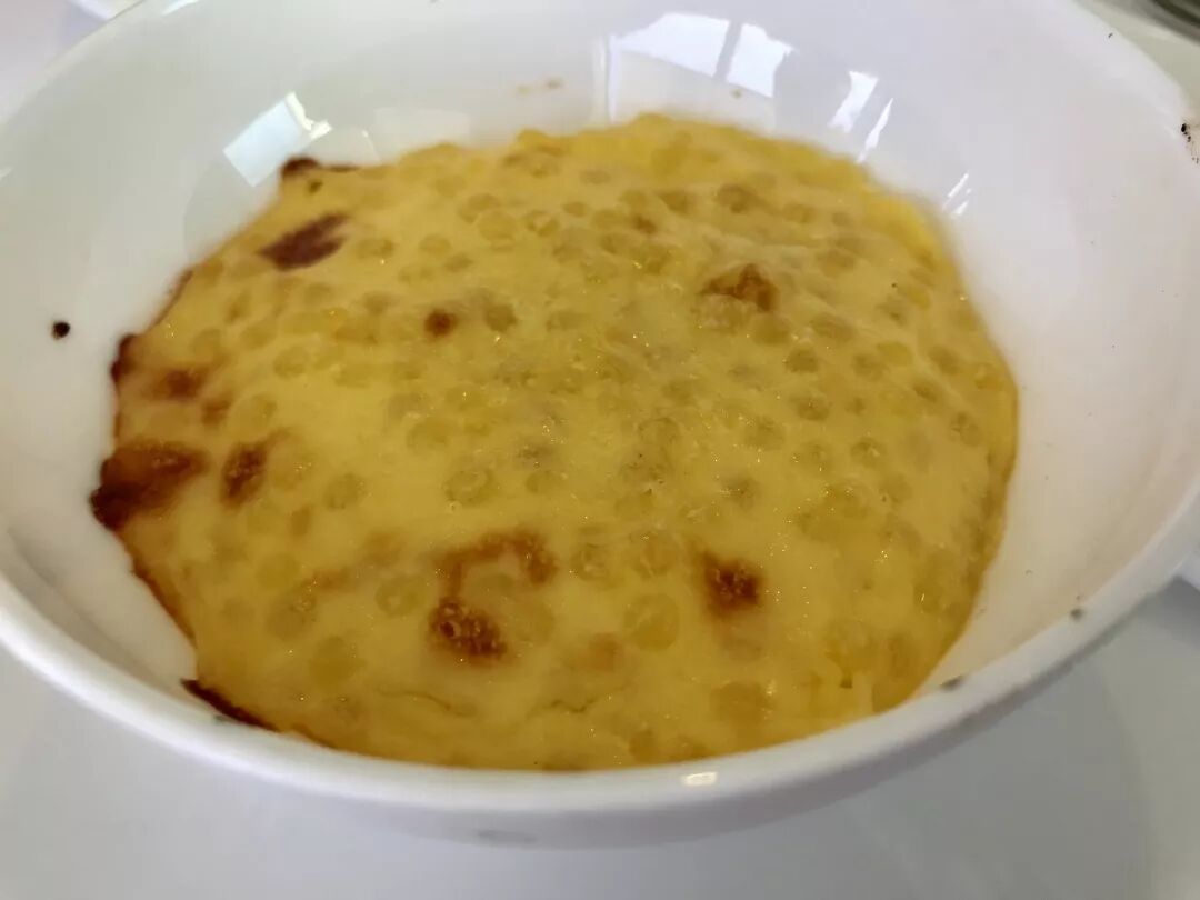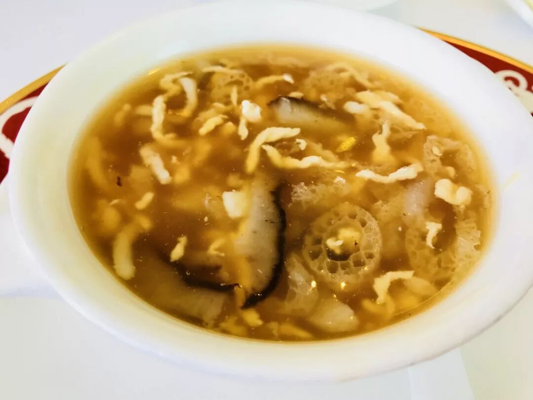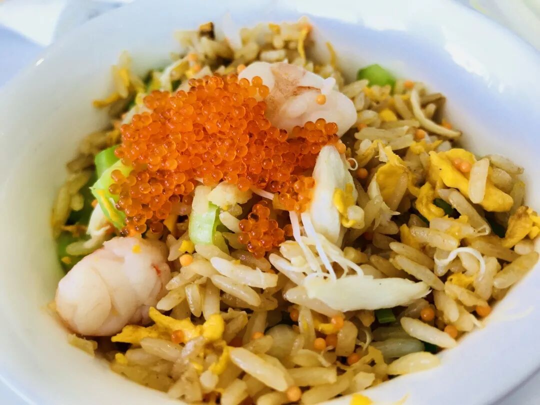 蟹肉鱼籽炒饭鱼籽的Q弹和竹笙鸡丝辽参羹的鲜香,都能令人眼前一亮。餐后的传统粤式点心桃酥、枸杞桂花糕、莲蓉西米焗布丁美味依旧。