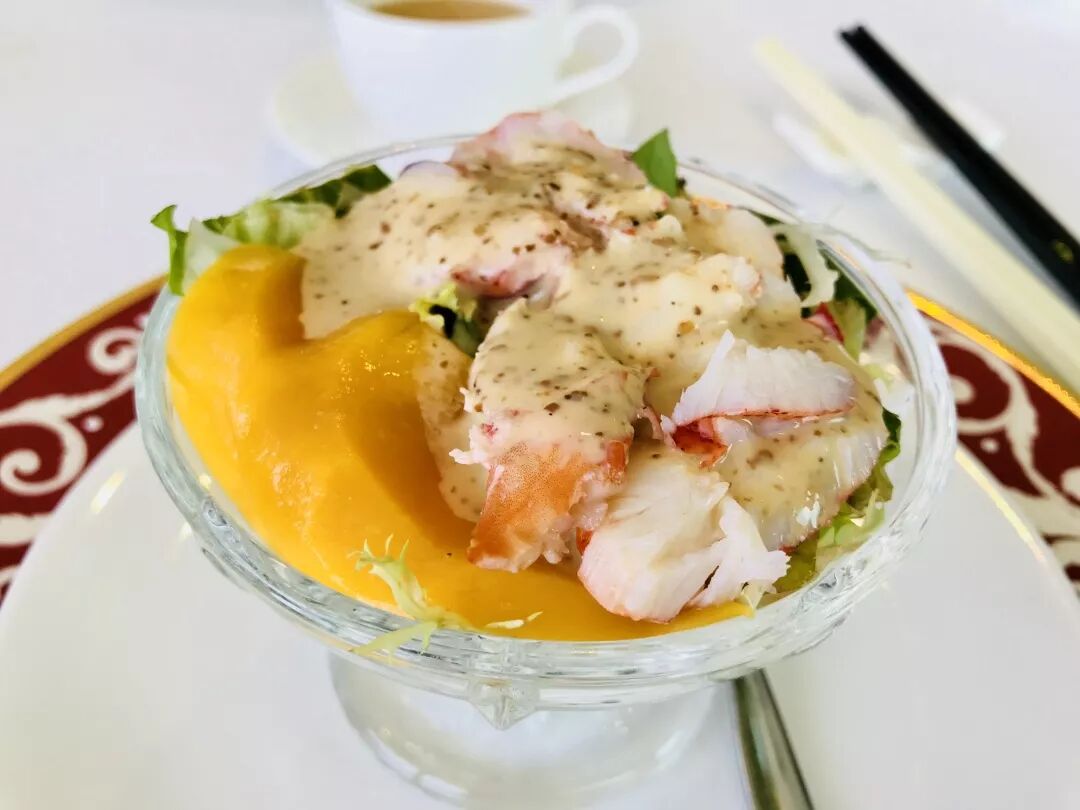 头抬吸引我们的是香芒龙虾沙拉,芒果的果香与龙虾的鲜甜恰到好处。