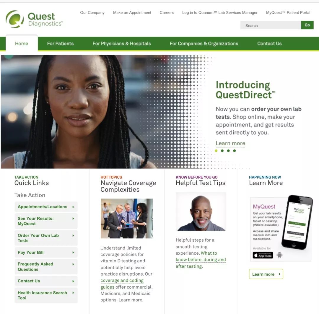 Quest Diagnostic在全美约有2000多家临床试验检测点。是美国最著名的临床检测公司之一。
