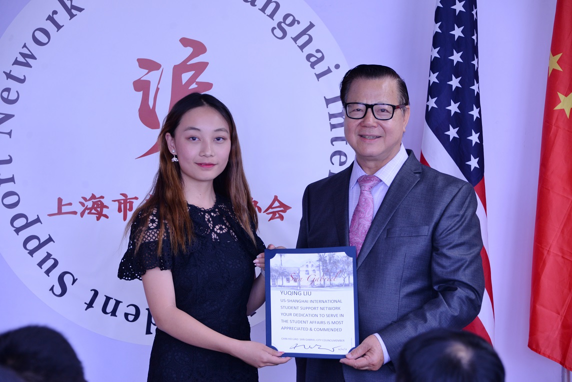 城市新闻6月22日亚凯迪亚市报导,美国上海留学生协会在亚凯迪亚市正式成立,圣盖博市市议员廖钦和、美国洛杉矶华文作家协会荣誉主席卢威、美国易咨范教育科技有限公司全球CEO Dave Wang、EasyfindCompany 北美地区CEO刘晓影、美国易咨范教育科技有限公司学生活动部总经理阎博鑫(Arvin)、Bright Future Consulting 公司CEO胡容瑜(Tony)、美国广东留学生协会执行委员会主席吴宇宙等出席成立盛典,廖钦和市议员向美国上海市留学生协会首届主席刘玉清颁发贺状,美国广东留学生协会主席吴宇宙主持成立典礼。
