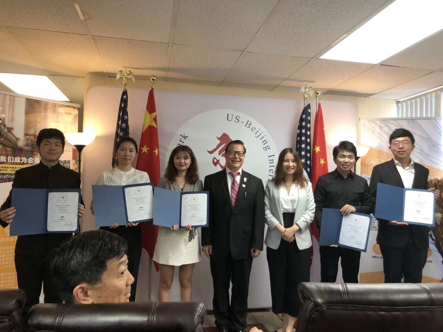 城市新闻7月19日亚凯迪亚市报导,美国北京留学生协会在易咨范留学生平台会议厅成立,张口笑任美国北京留学生协会主席。圣盖博市市议员廖钦和、美国洛杉矶华文作家协会荣誉主席卢威、美国易咨范教育科技有限公司全球总裁王大维、学生活动部总经理阎博鑫(Arvin)、美中青年创业联合会执行会长张奇志、Hollywood C&D young artist academy 总裁郝 丹丹、美国书画艺术研究院副院长许多等出席并向张口笑主席颁贺状。美国广东留学生协会执行委员会主席吴宇宙主持成立仪式。