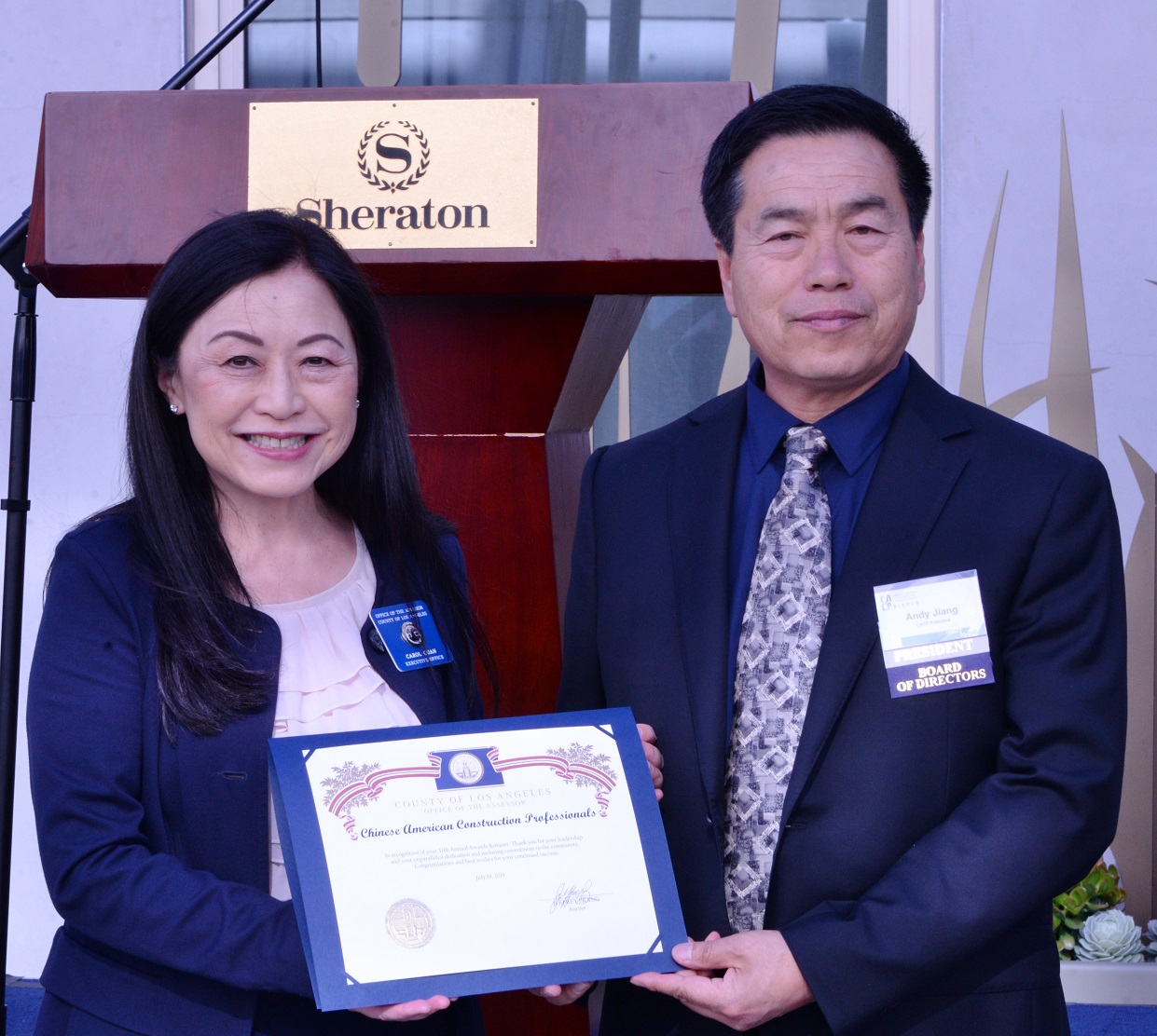 美国华人营建公会年会还向UCLA建筑系Peiwei Zhang、加州州立波莫纳工艺大学工程系Esther Kala 和Yesenia Campos以及UC戴维斯分校建筑系Selena Anguiano颁发奖学金;并表彰了优秀工程项目、公司及赞助商。侨界代表马树荣、庄佩源、周媄媄、徐晓峰、孙文铁、杨辉、田纹瑛、贺军平、刘扬林、林光、王爱琳、张明巨、赵林、王迪云、王素雯、北奥、段成金、颜利平、白东梅等出席年会庆典。