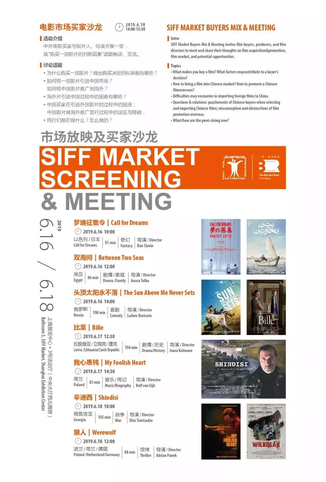 其中,电影市场放映及买家沙龙是今年的新板块,会放映来自世界各地共7部具有市场潜力的新片;6月18日下午2点到3点半,举办市场买家沙龙活动,邀请国内外从事电影版权交易的产业来宾,共同讨论在买片过程中的经验与困惑。