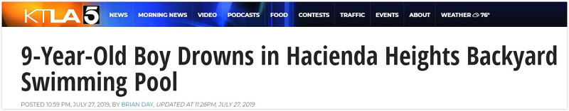 据KTLA报道,这户人家在晚上7点45分左右打电话报警,称自己家9岁的孩子在家中的游泳池中溺水。这户人家位于哈仙达岗 Leticia Drive3200街区的一个家中。